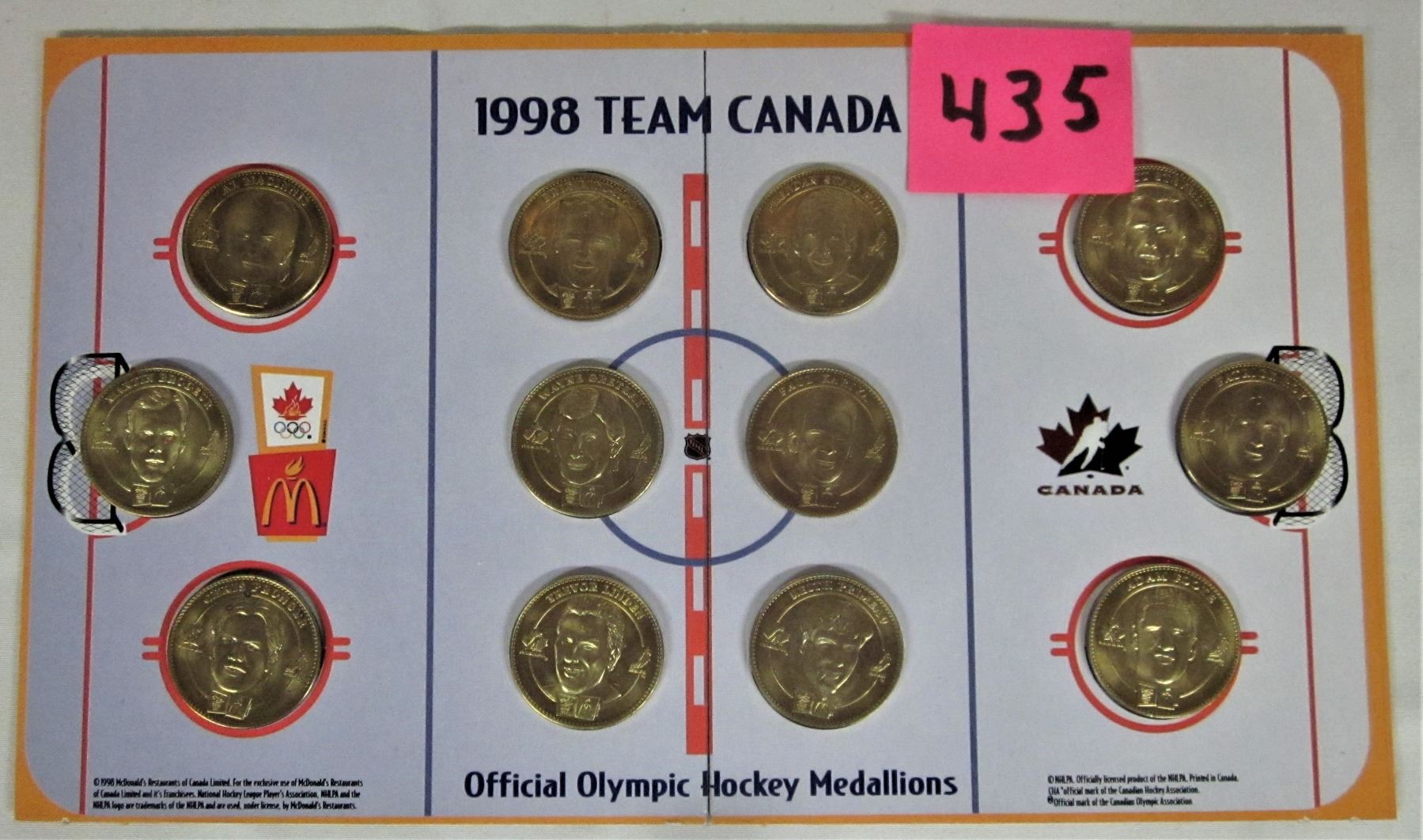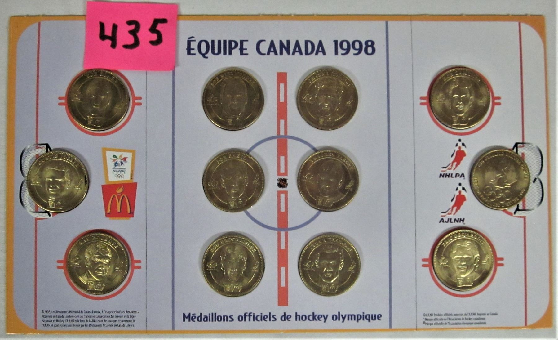 Set of 12 1998 Olympic McDonalds player coins/cardboard rink display