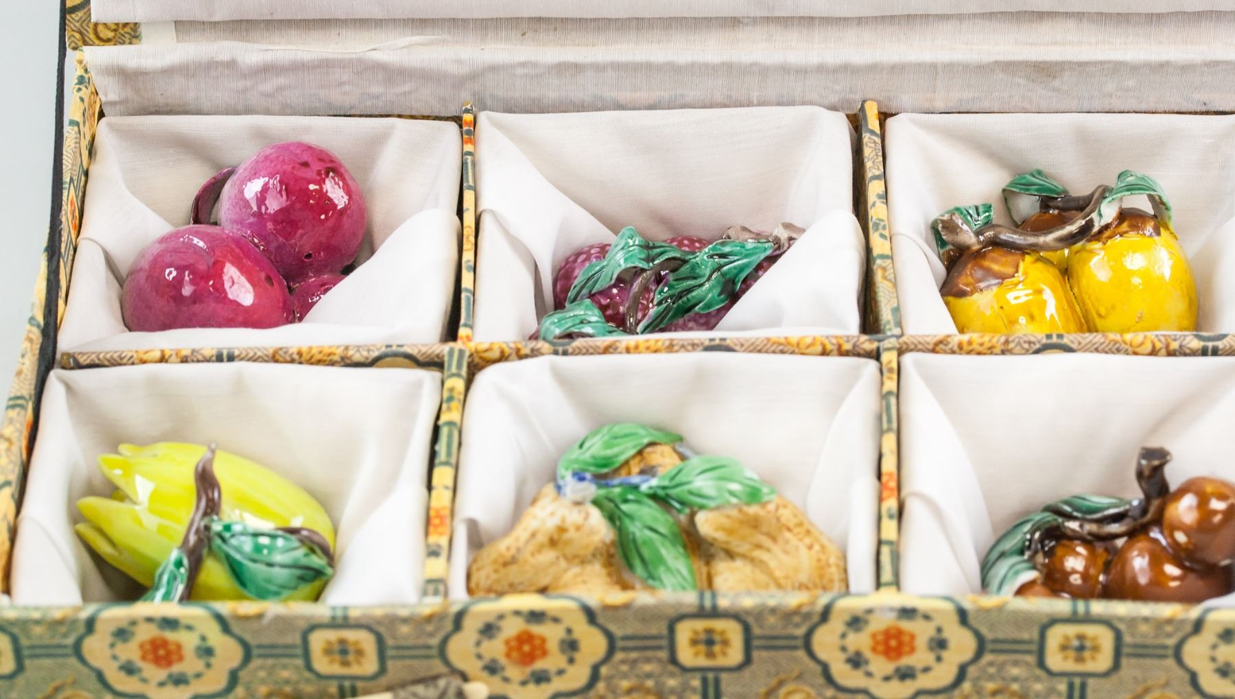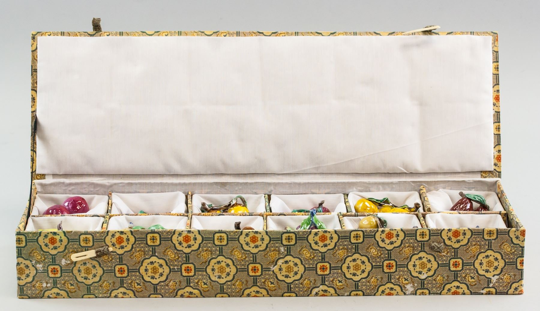 12pc Chinese set of model fruit. Republic era. 3 x 7 cm, 1641 grams (with box), 65 grams (each)