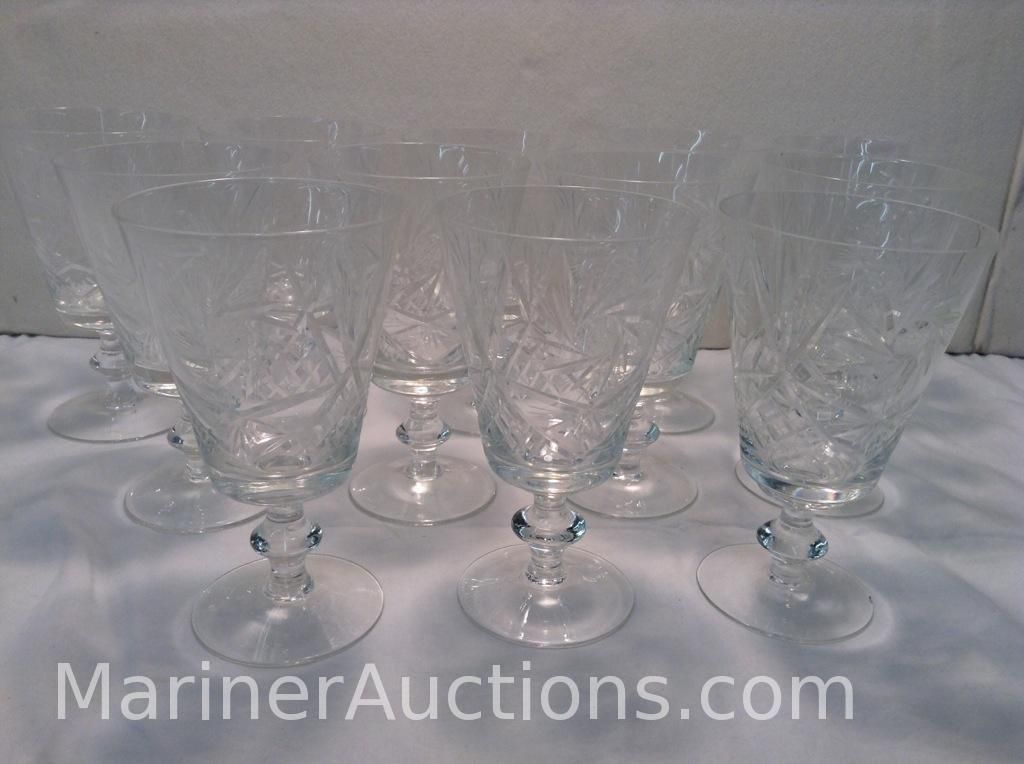 Set of 12 Hungarian pinwheel crystal wine glasses