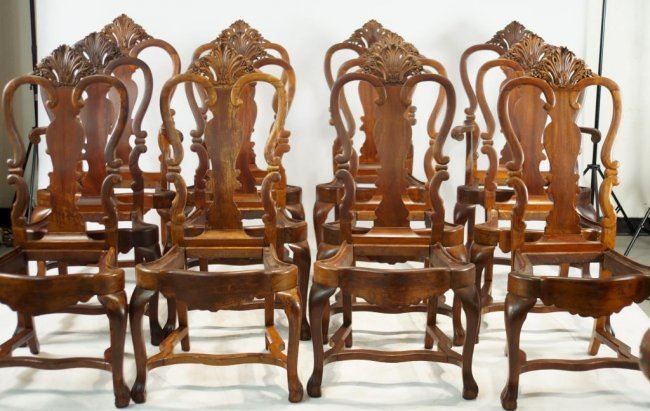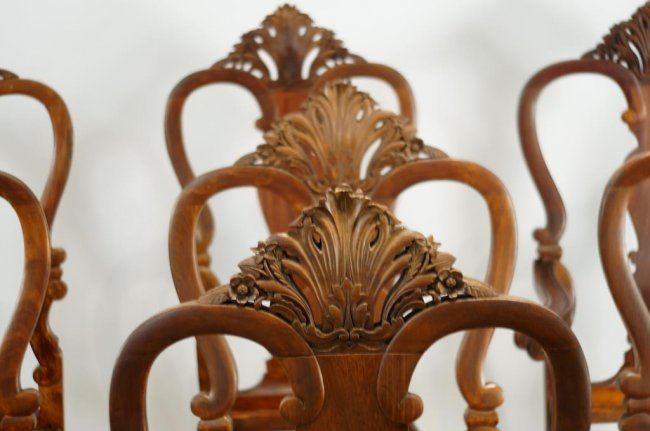 Fancy carved craws with flowers include original seats that may need to be re upholstered