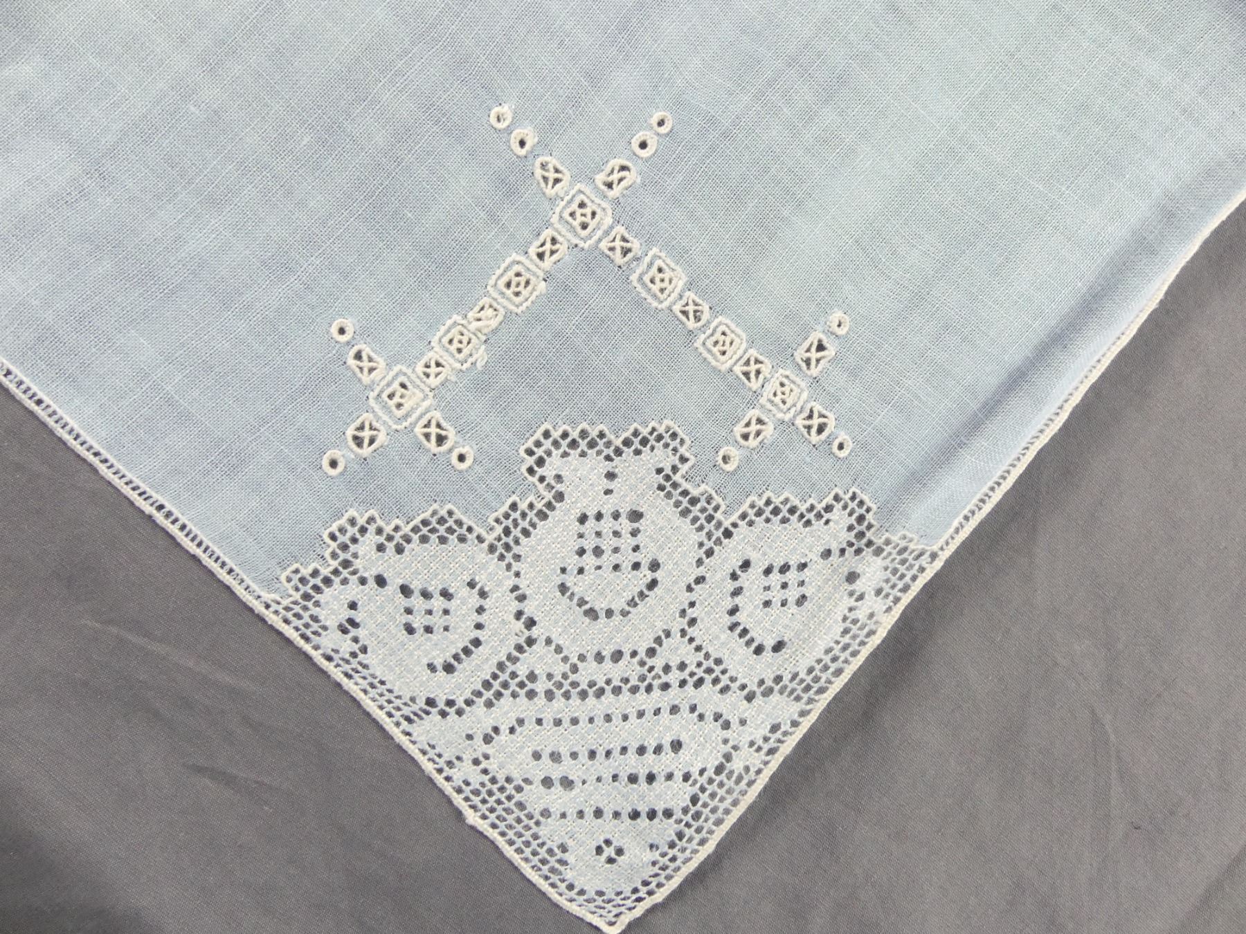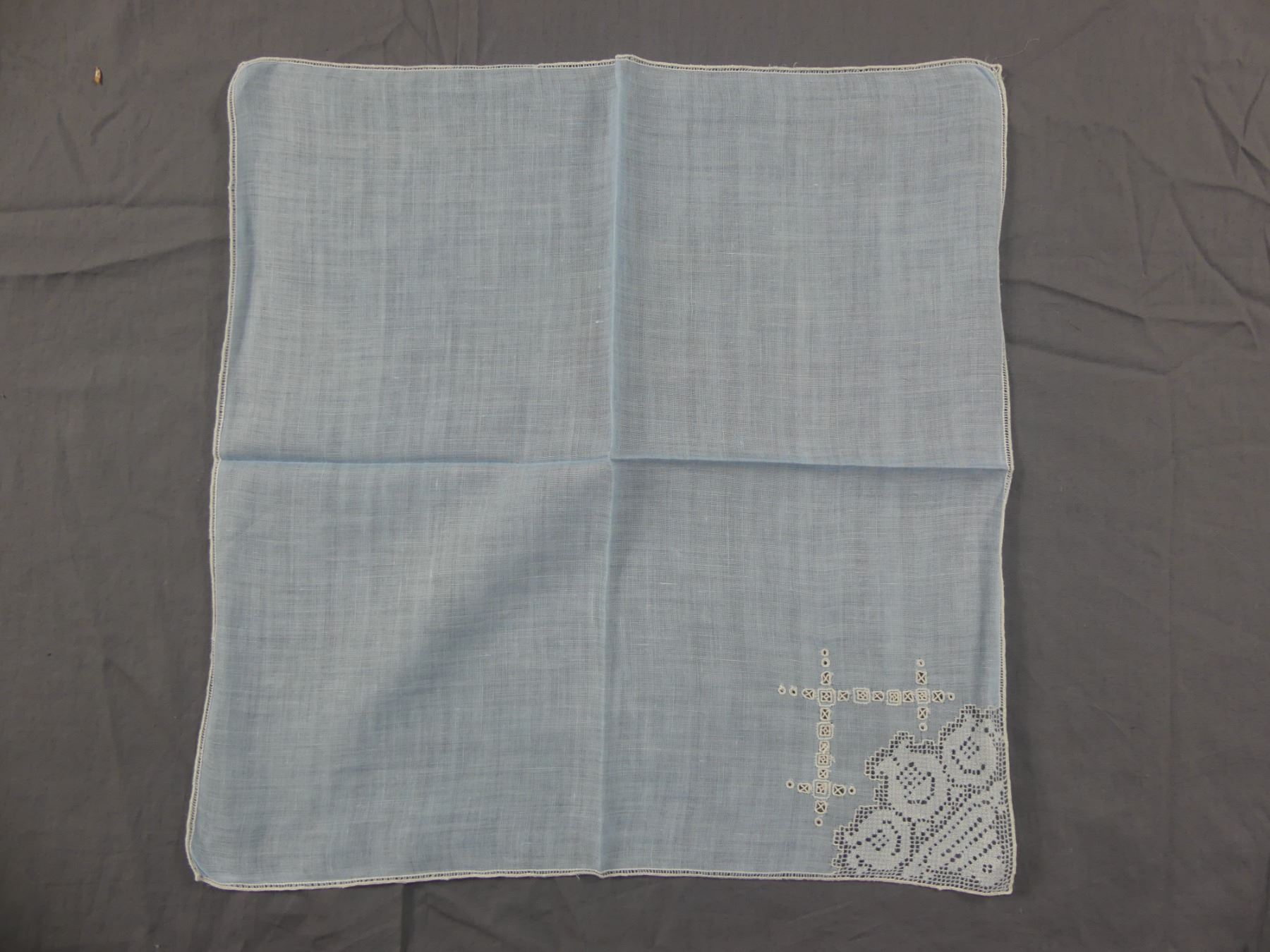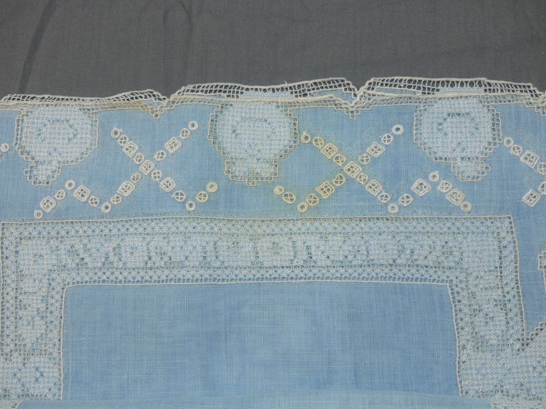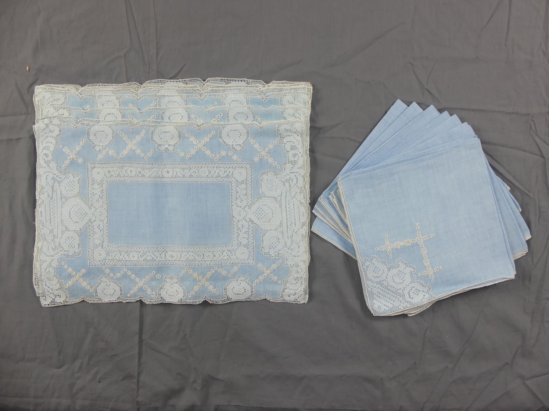 Set of 12 Vintage Blue Lace & Linen Placemats & Napkins