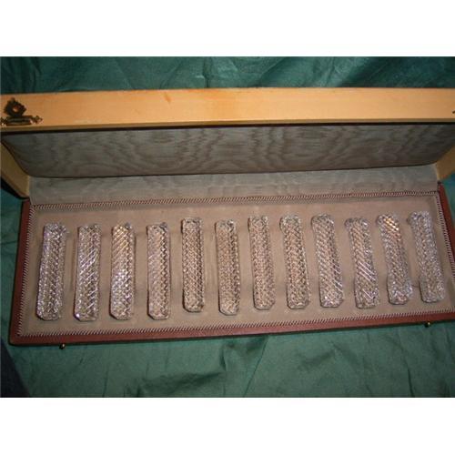 <tr><td>Title:Set of 12 Vintage Cut Christal Knife- rests</td></tr>
