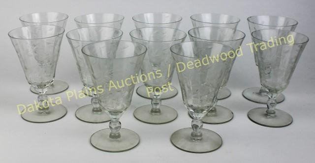 with hand cut floral designer, nice quality set with NO chips, two with very light rim flakes otherwise very good. Est. 25-75