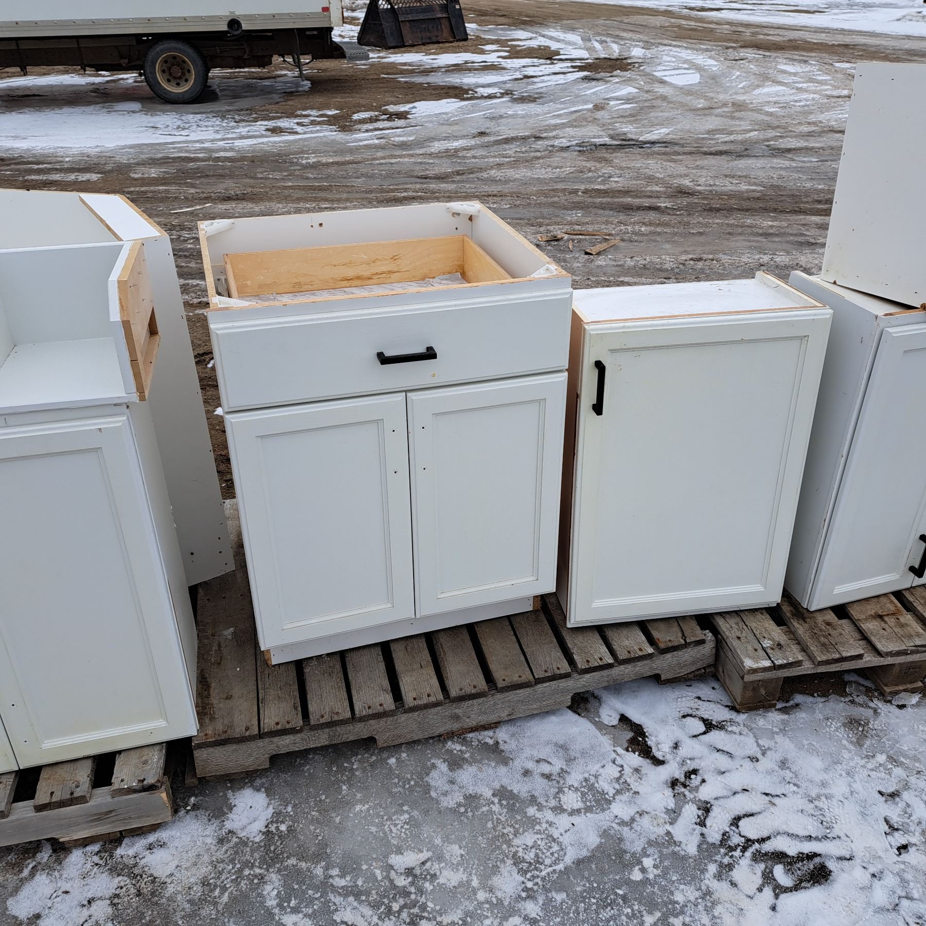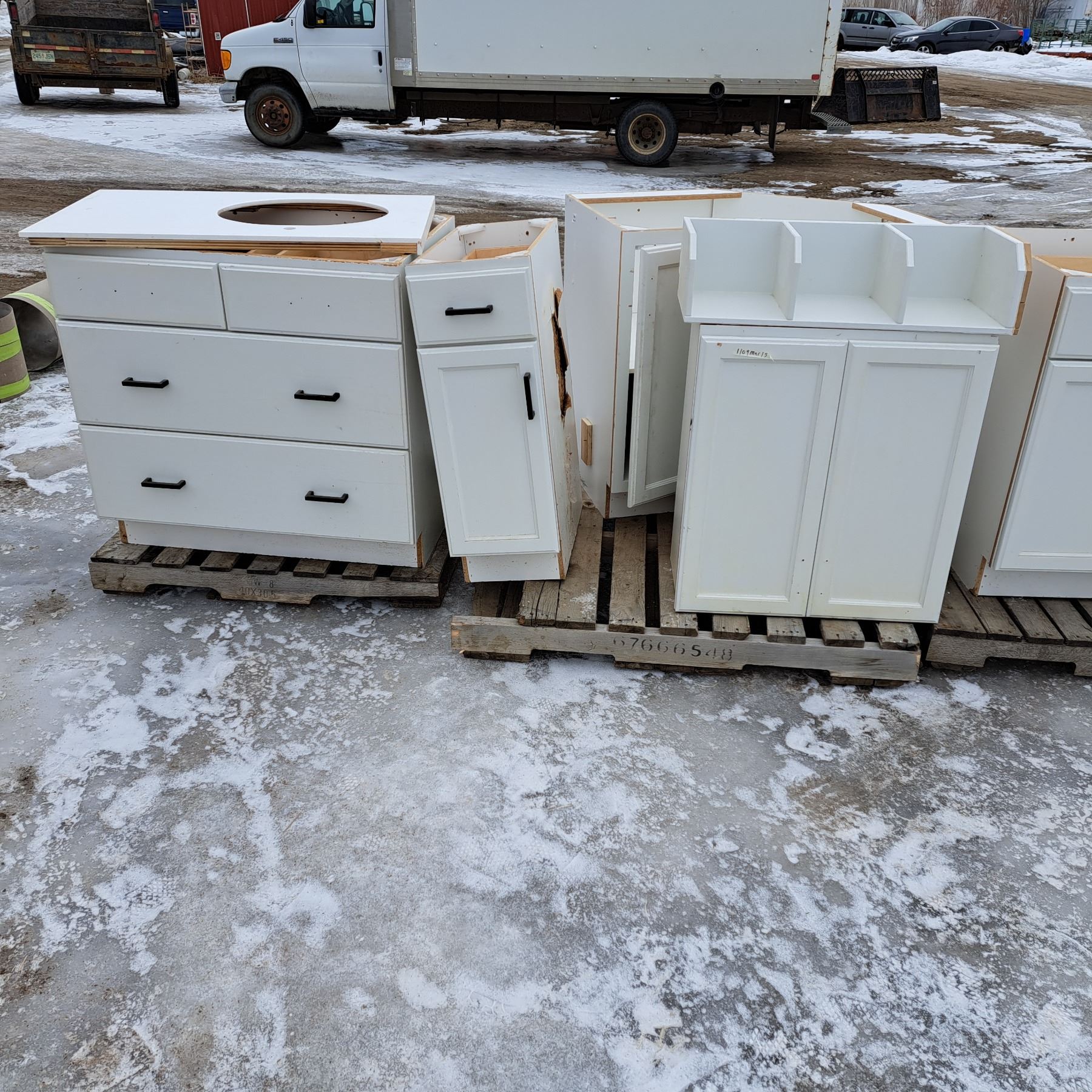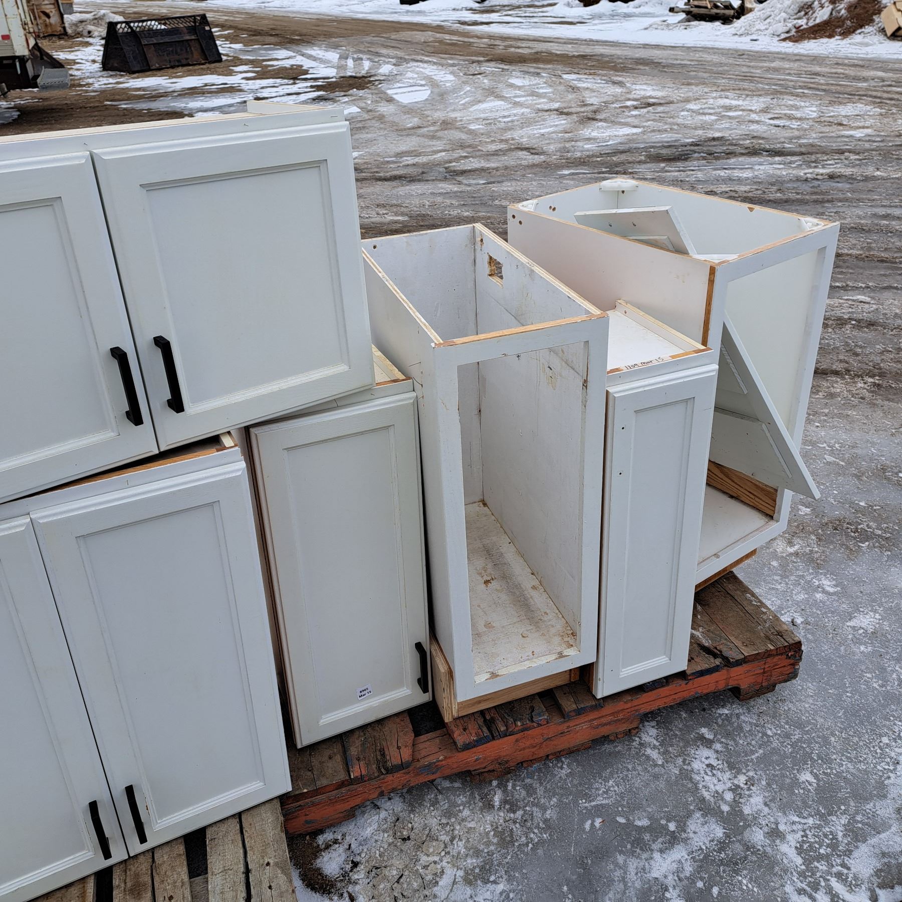 Set of 12 white cabinets 8 bottoms and 4 tops