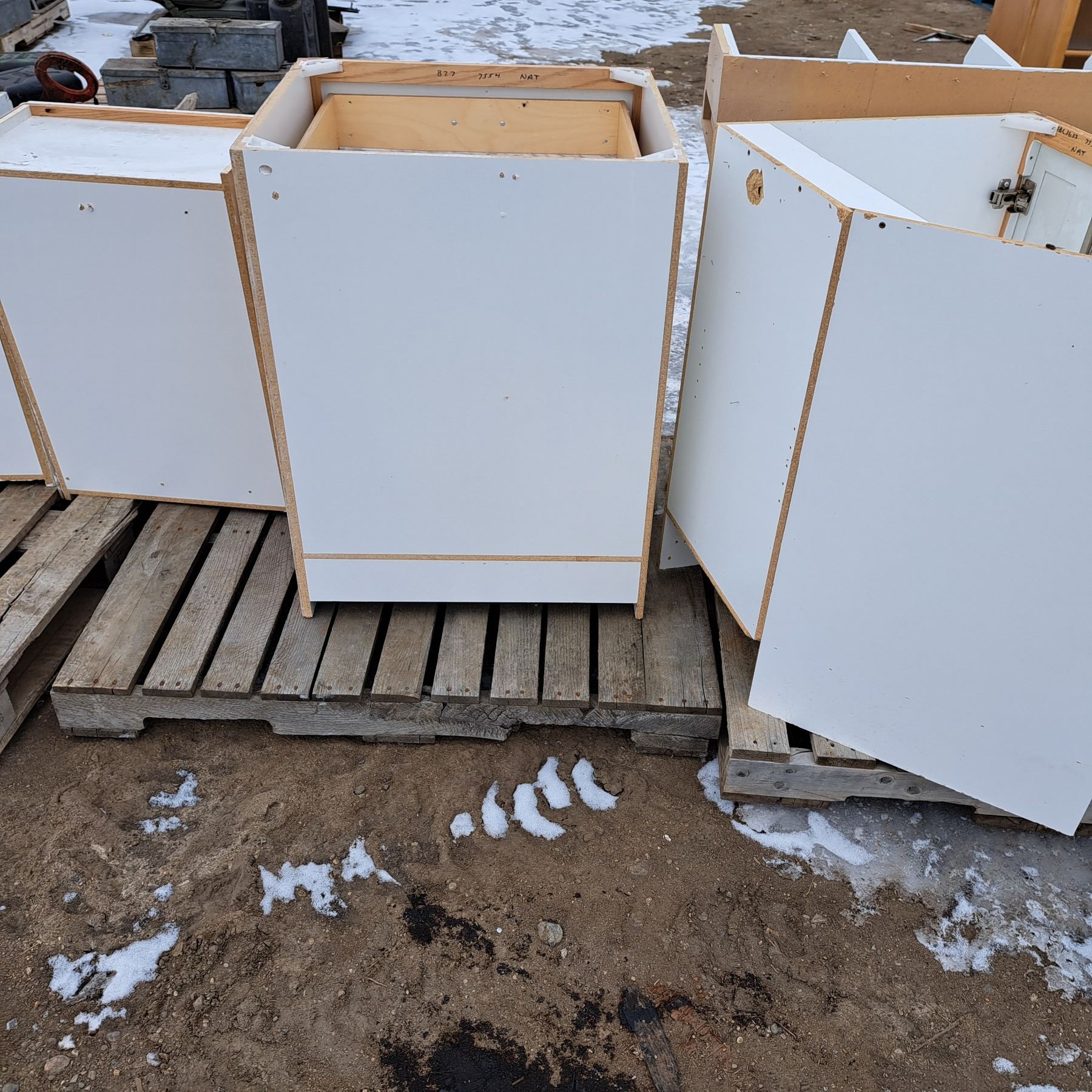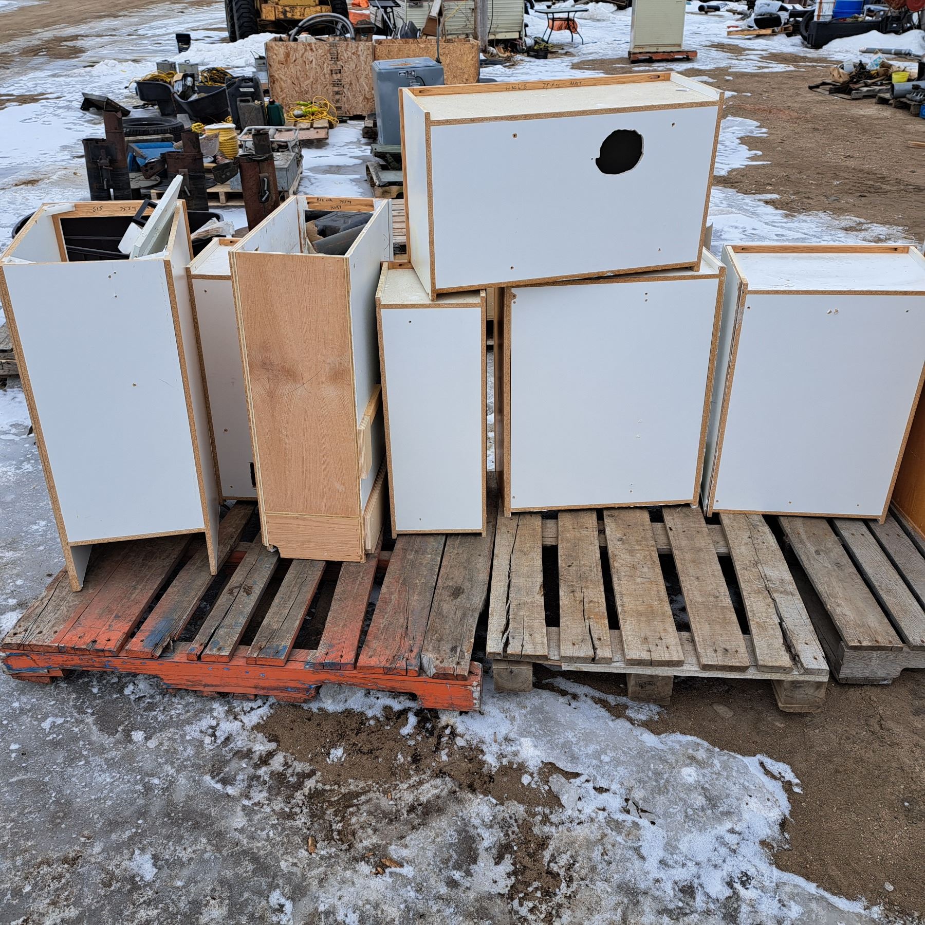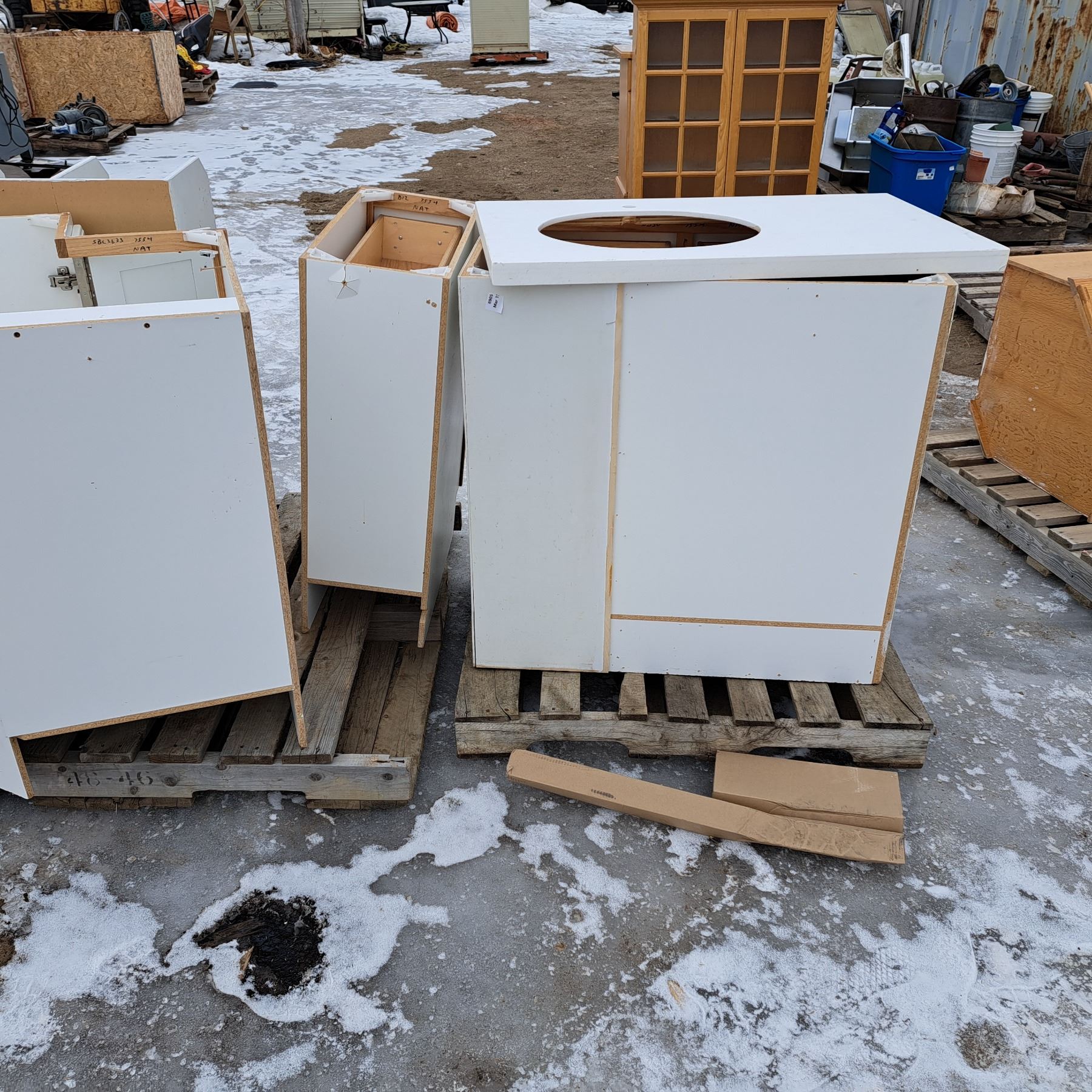 Set of 12 white cabinets 8 bottoms and 4 tops