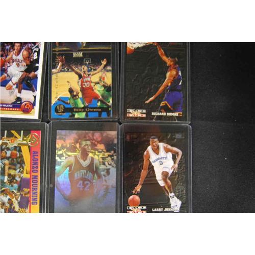 Karl Malone, Charles Barkley, Alonzo Mourning, Walt Williams, Larry Johnson, Richard Dumas, Billy Owens, Dan Majerle, David Robinson, Hoops Series 1 '93-'94, Harold Miner, Tim Hardaway, Jamal Mashburn, Topps Beam Team 5 of 7 & LaPhonso Ellis.