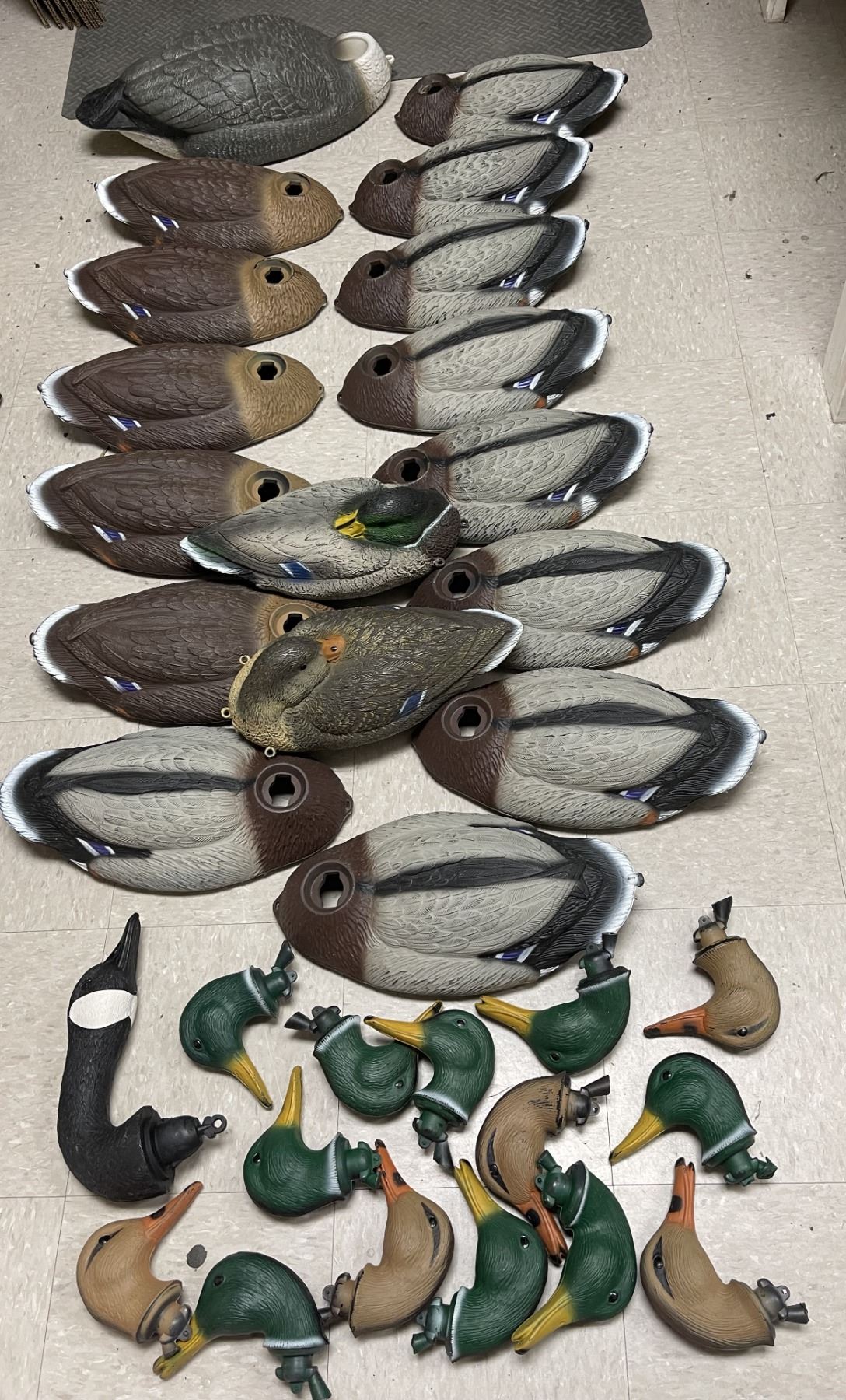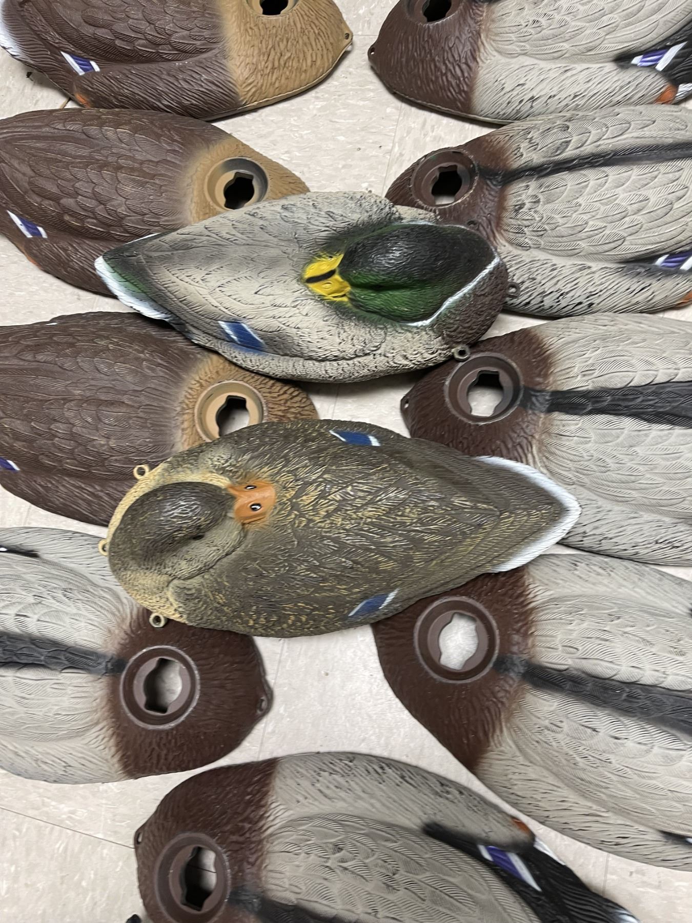 14 - FLAMBEAU duck decoys – 5 hens, 9 Drake with detachable heads