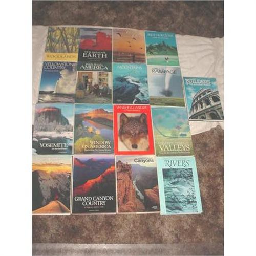 Titles are: Blue Horizons Paradise Isles of the Pacific 1985, Americas Atlantic Isles 1981, Yosemite 1990, Exploring Americas Valleys 1984, Vanishing Wildlife of North America 1974, Secret Corners of The World 1982,Americas Majestic Canyons 1979,Back Roads America 1980,Americas Magnificent Mountains 1980, Americas Wild & Scenic Rivers 1983, Americas Wild Woodlands 1985, Nature on The Rampage 1986,Builders of The Ancient World 1986, Our Awesome Earth 1986,Window on America 1987,Yellowstone Country 1989, Grand Canyon Country 1991.