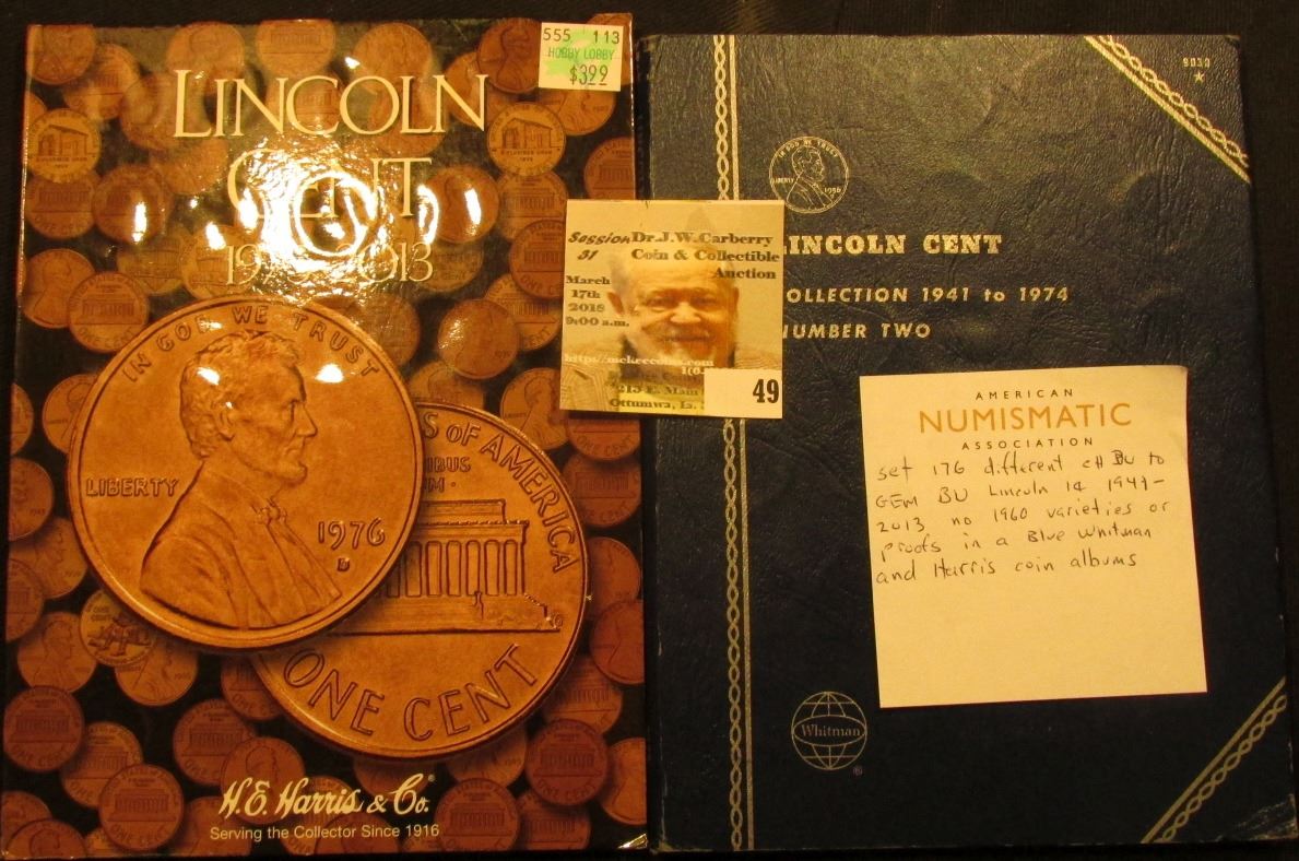 Set of 176 different Ch BU to Gem BU Lincoln Cents 1941-2013 no 1960 varieties or Proofs. Stored in Whitman and Harris Coin folders.