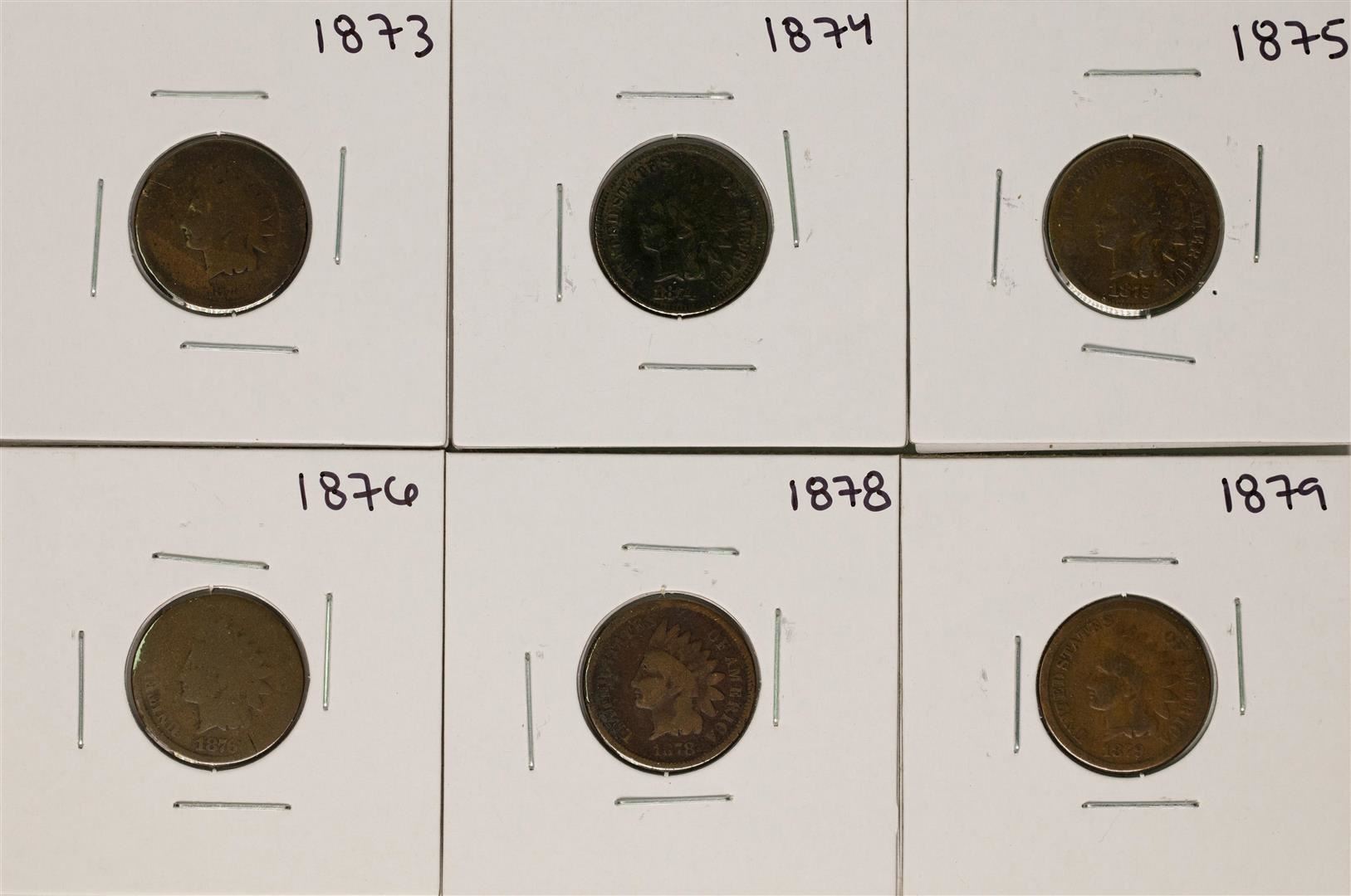 One Set of 1873-1879 (No 1877) Indian Head Cent Coins.