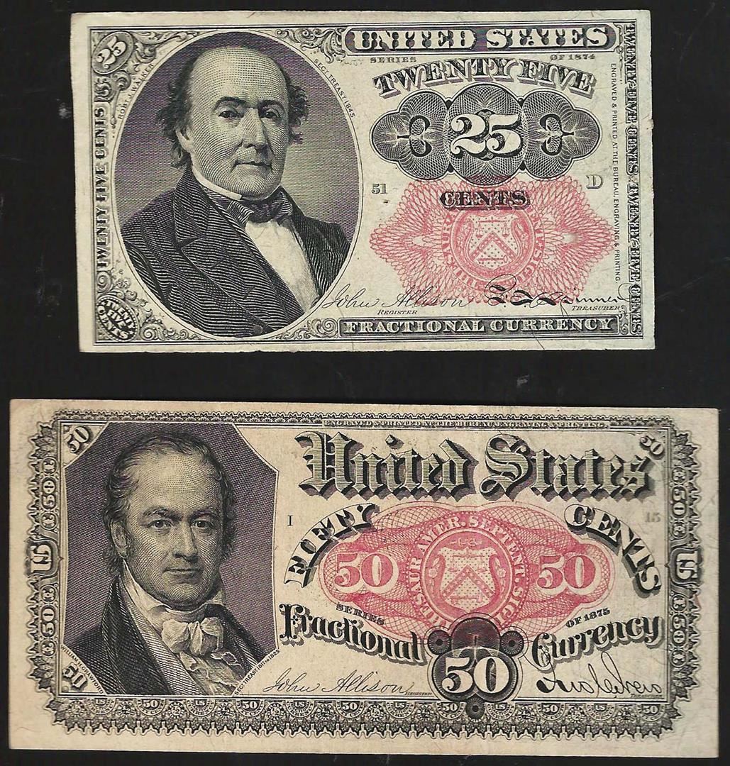 One Set of 1874 Twenty-Five & Fifty Cent 5th Issue Fractional Notes.