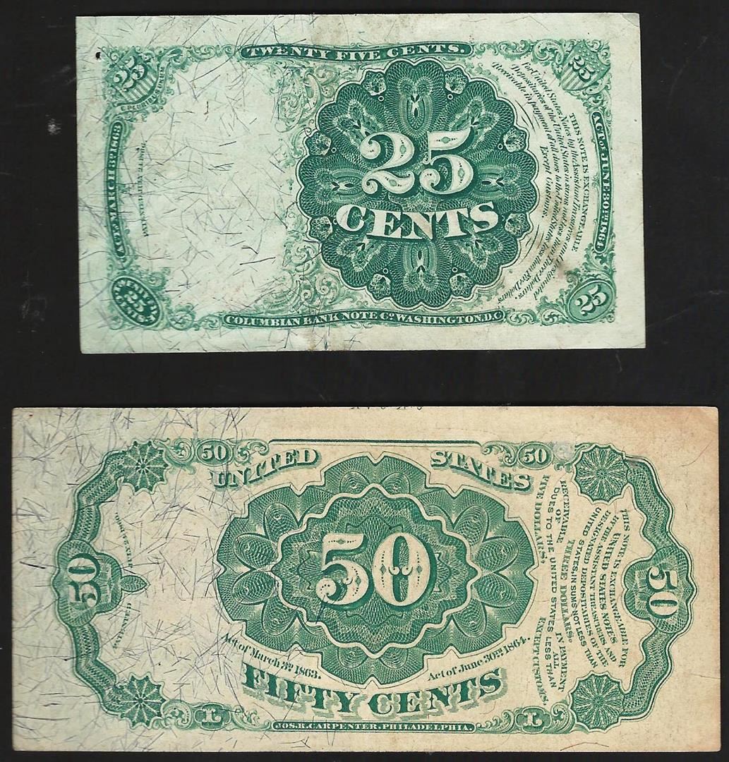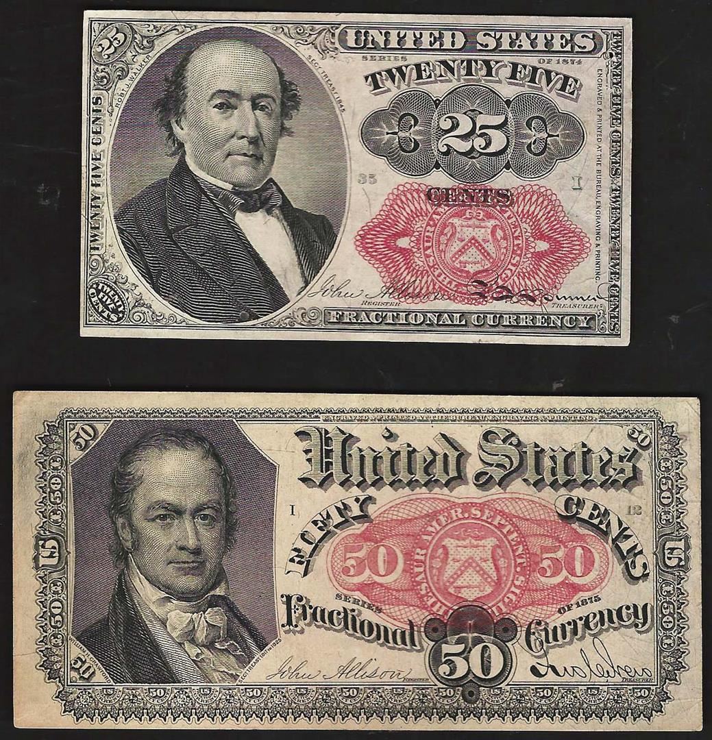 One Set of 1874 Twenty-Five & Fifty Cent 5th Issue Fractional Notes.