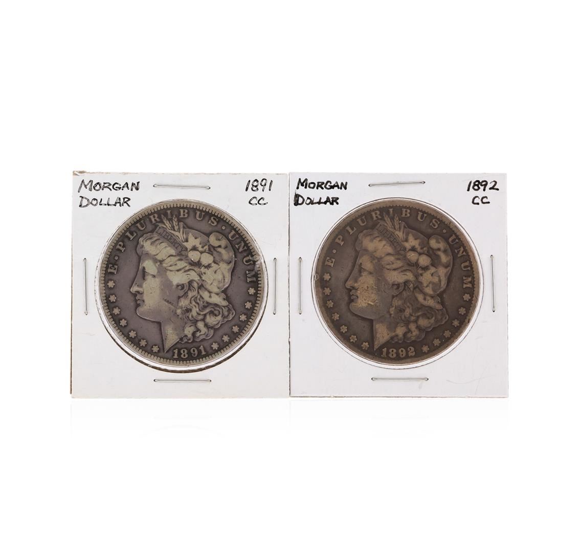 One Set of 1891-CC & 1892-CC $1 Morgan Silver Dollar Coins.