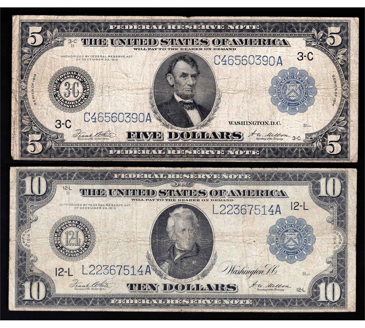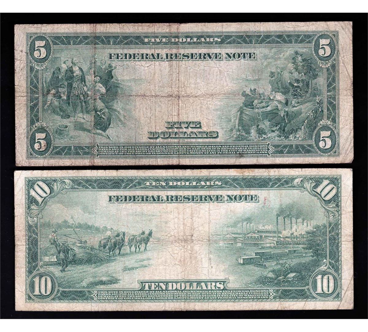 One Set of 1914 $5 & $10 Large Size Federal Reserve Notes.