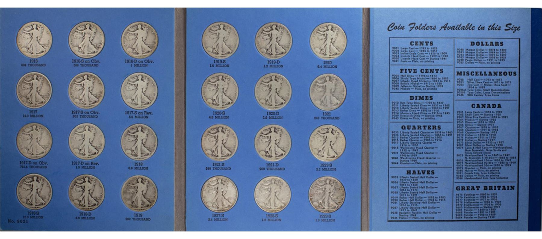 One Set of 1916-1936 Walking Liberty Half Dollar Coins in Book.