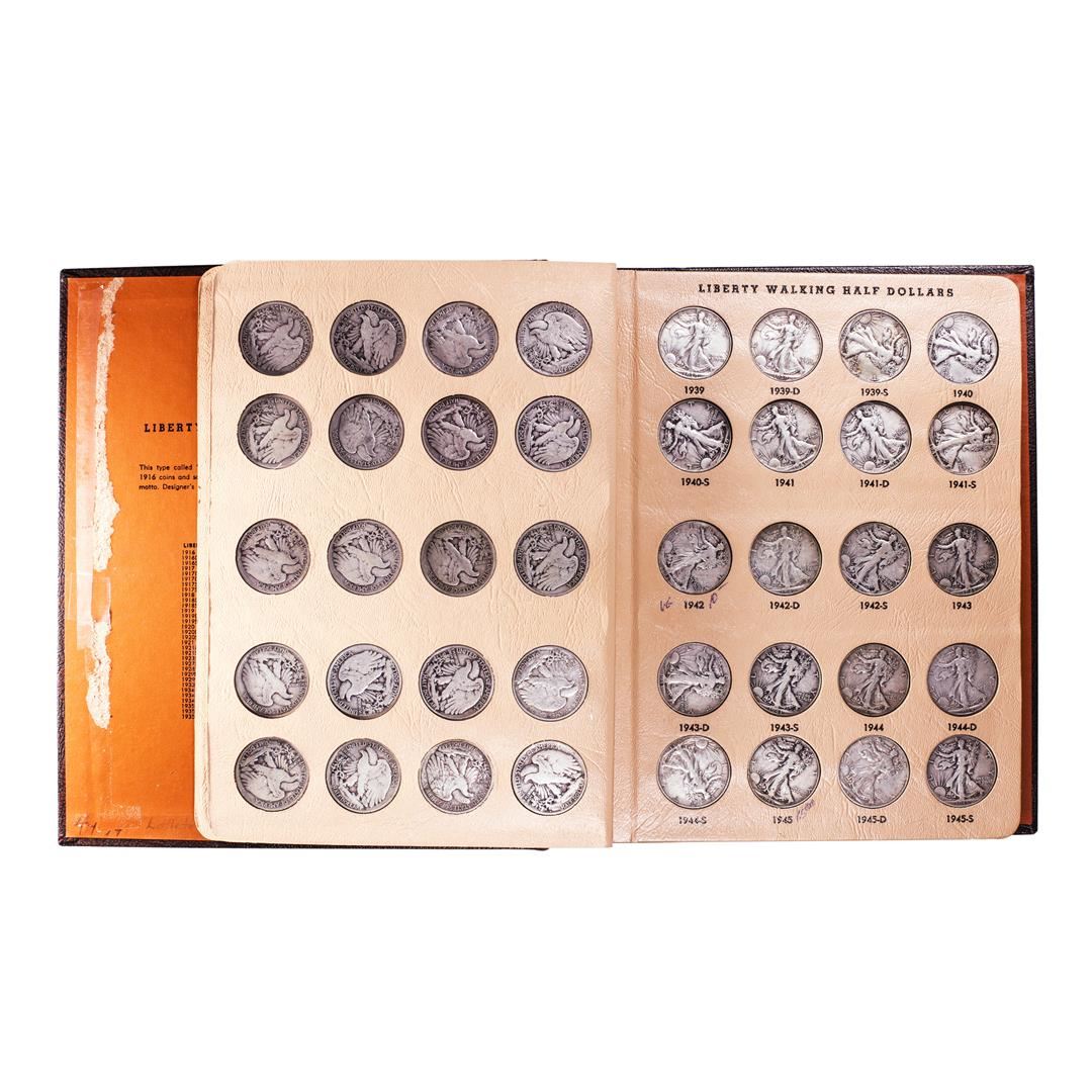 One Set of 1916-1947 Walking Liberty Half Dollar Coins in Dansco Book with Extra Coins.