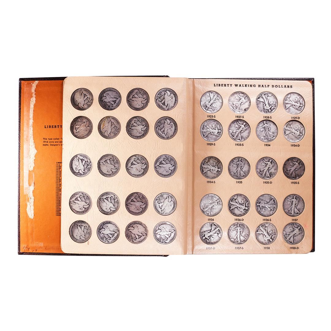 One Set of 1916-1947 Walking Liberty Half Dollar Coins in Dansco Book with Extra Coins.