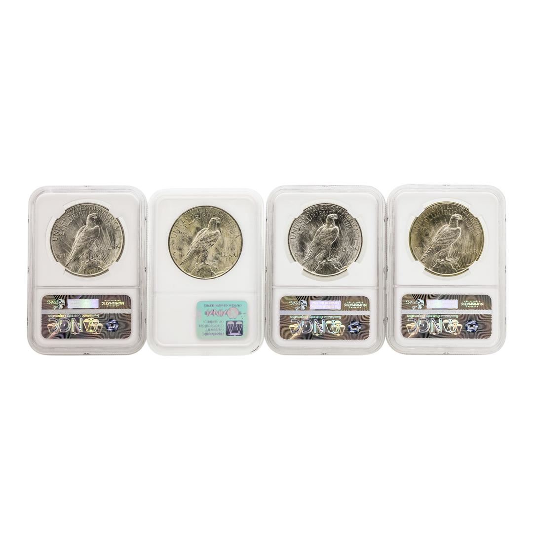 One Set of 1922-1925 $1 Peace Silver Dollar Coins NGC MS64. NGC Certified.