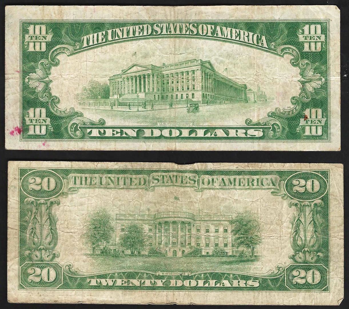 One Set of 1929 $10 & $20 San Francisco CA National Currency Notes CH# 13044.