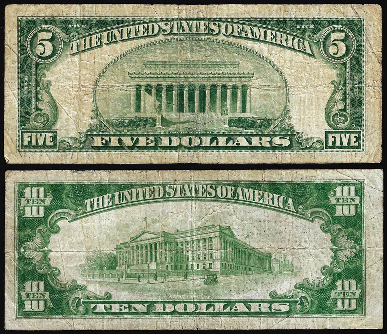 One Set of 1929 $5/$10 NB of Dallas, TX CH# 12186 National Currency Notes.
