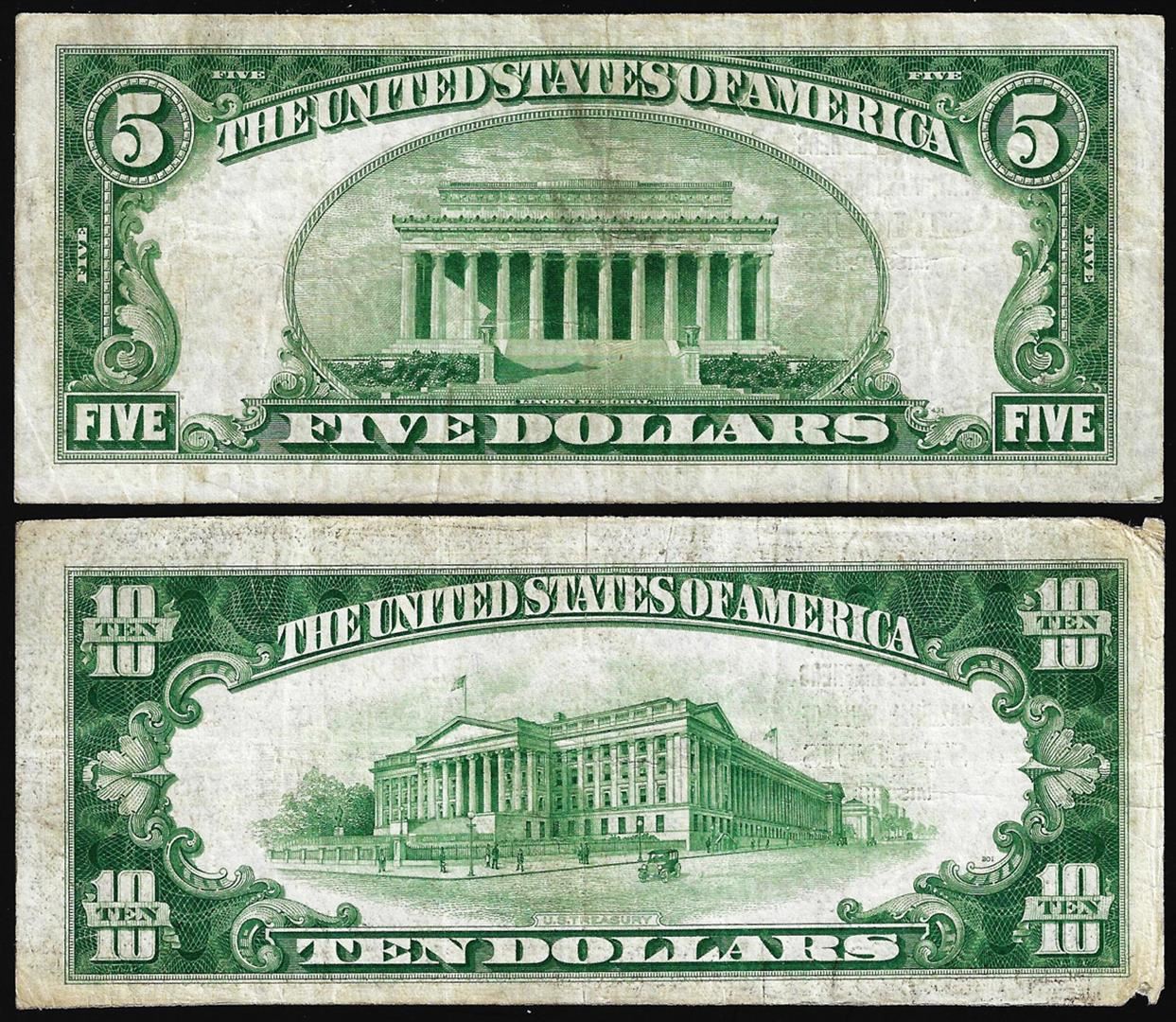 One Set of 1929 $5/$10 St. Louis, MO CH# 12389 National Currency Notes.