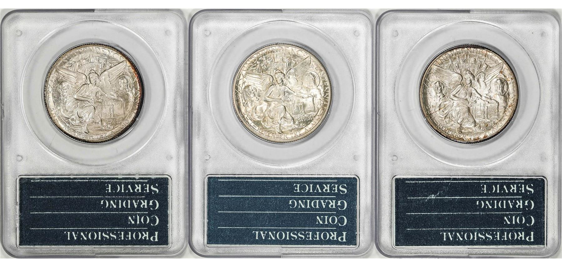 Set of 1936 P/D/S Texas Commemorative Half Dollar Coins PCGS MS65 Old Green Rattlers