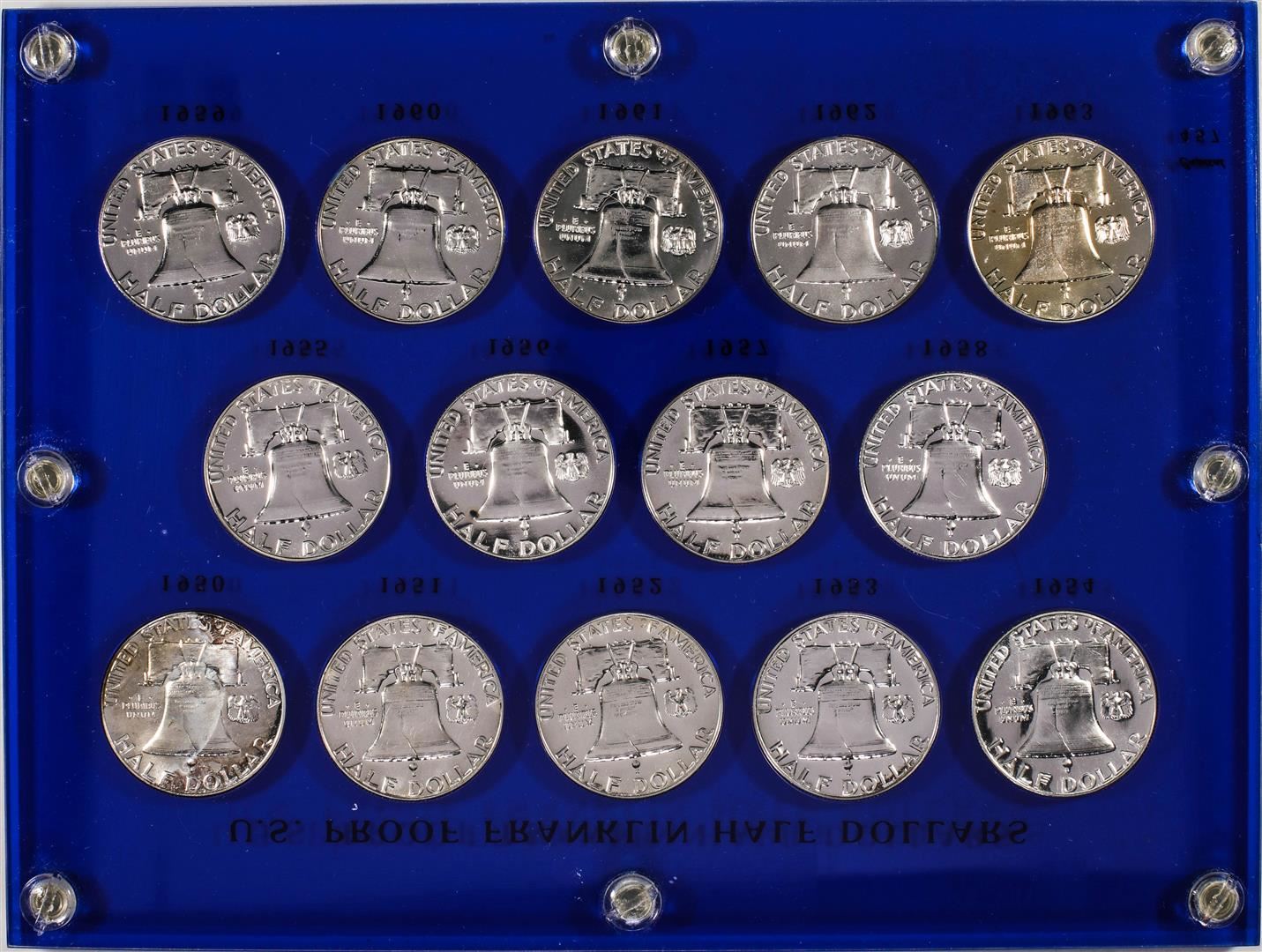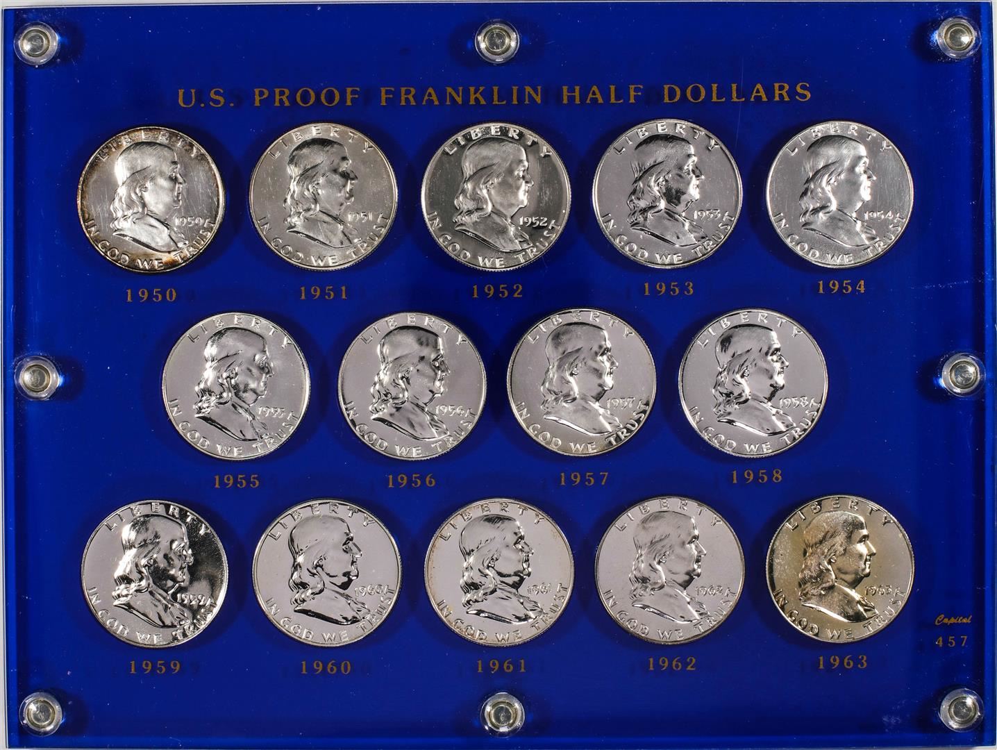 One Set of 1950-1963 Franklin Half Dollar Coins in Capital Plastic.