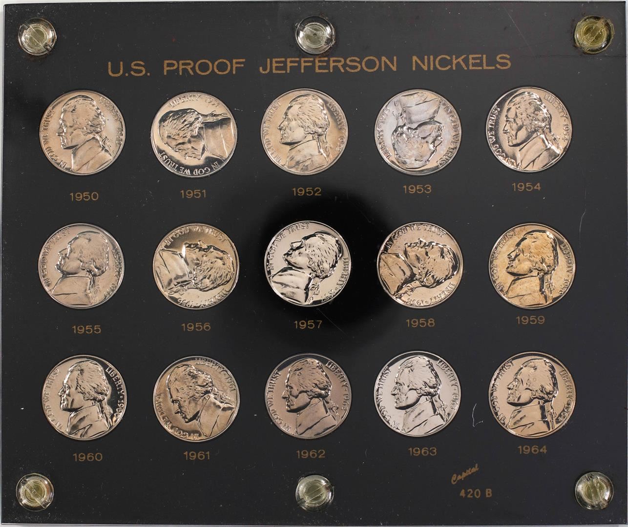 Set of 1950-1964 Proof Jefferson Nickel Coins in Capital Plastic Holder