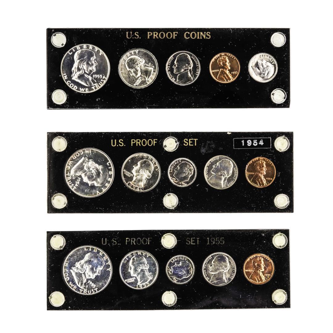 One Set of 1953-1955 (5) Coin Proof Sets.