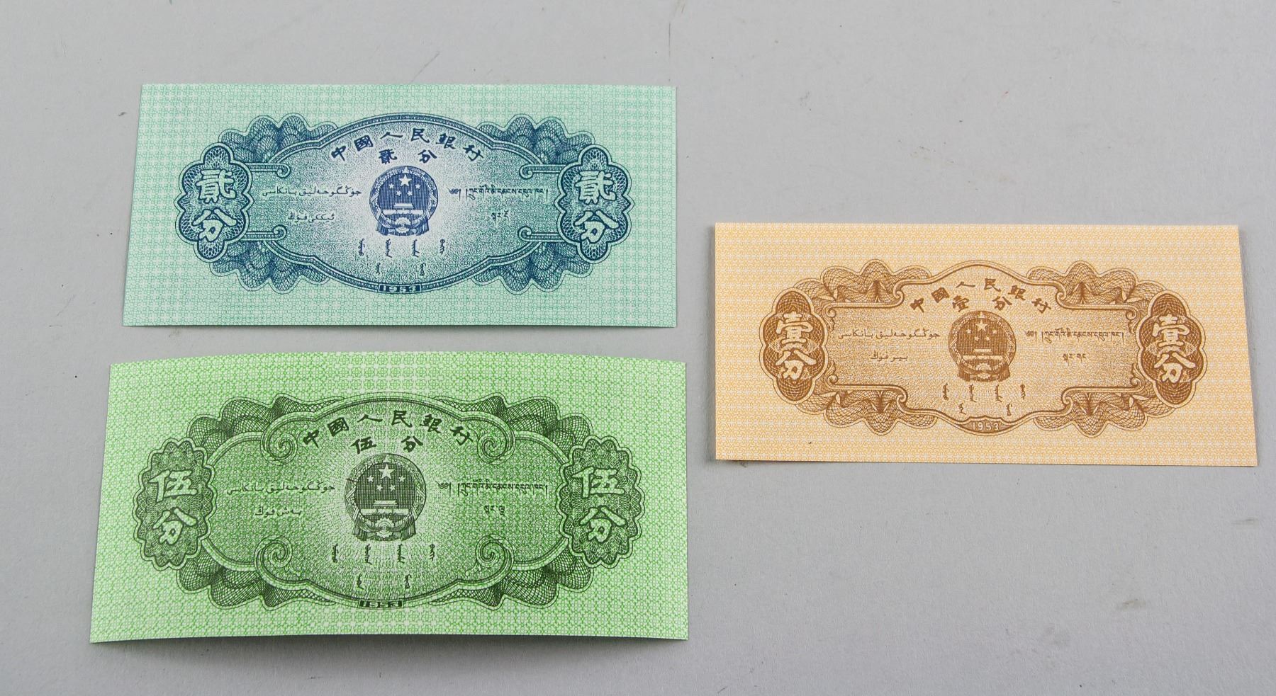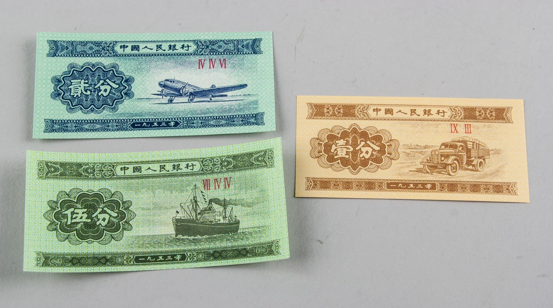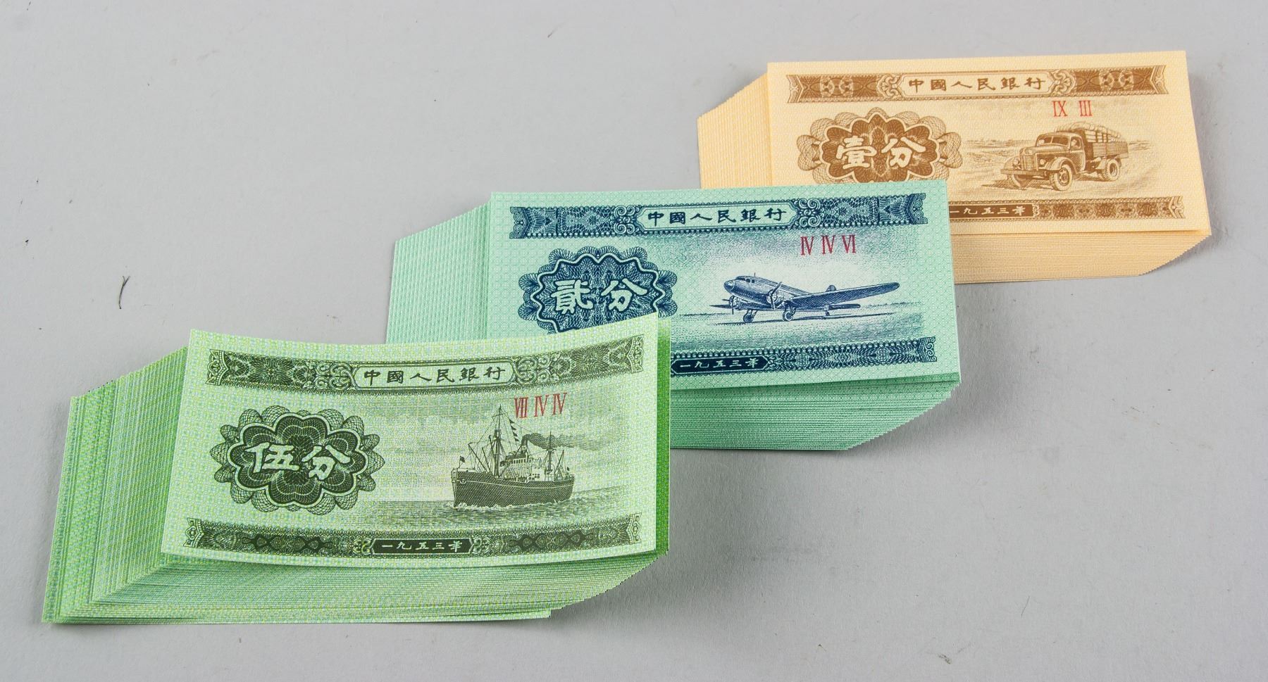 Set of 90 pieces 1953 Chinese banknotes, contains 30 one cent, 30 two cents and 30 five cents, uncirculated