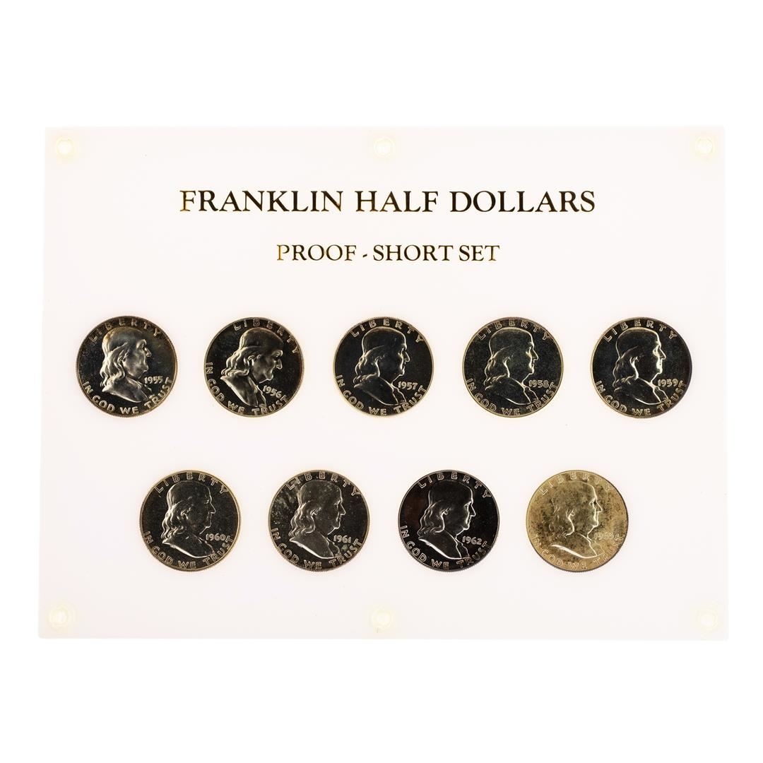 One Set of 1955-1963 Proof Franklin Half Dollar Coins.