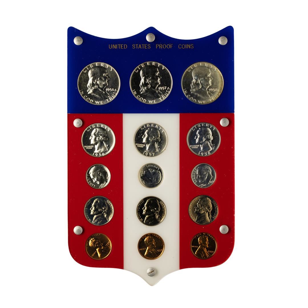 One Set of 1956-1958 (5) Coin Proof Sets in Shield.