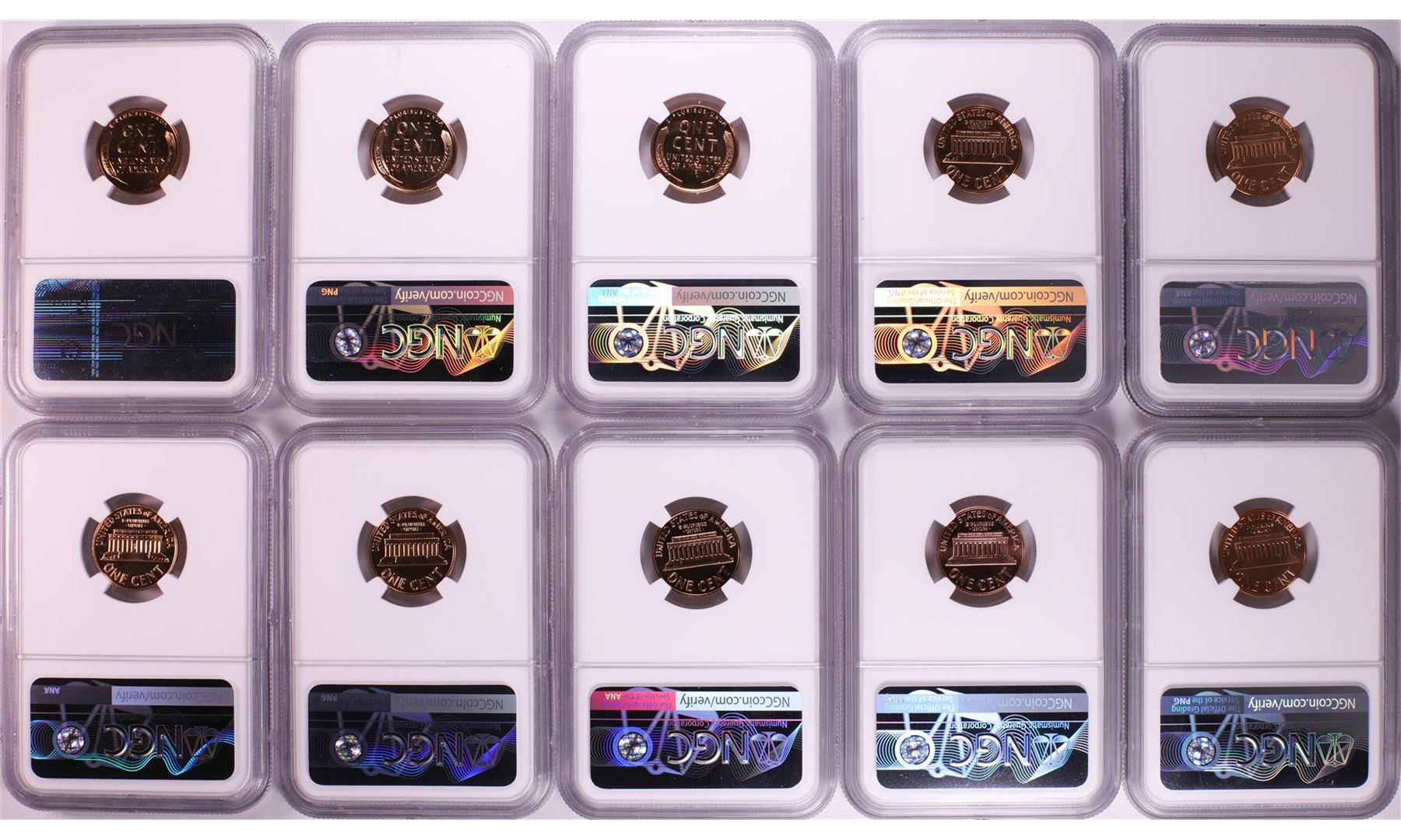 One Set of 1956-1964 Proof Lincoln Wheat Cent Coins NGC PF67RD. NGC Certified.