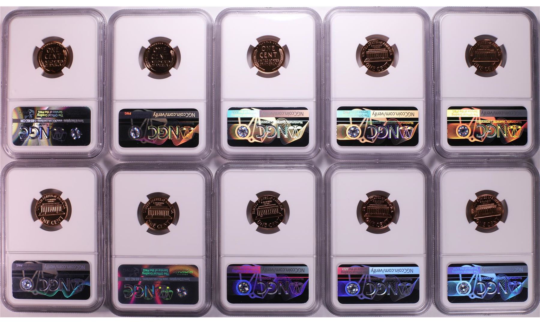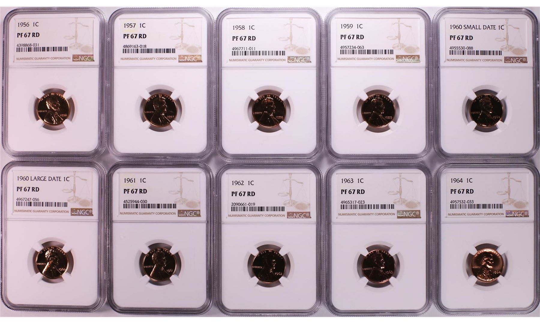 One Set of 1956-1964 Proof Lincoln Wheat Cent Coins NGC PF67RD. NGC Certified.