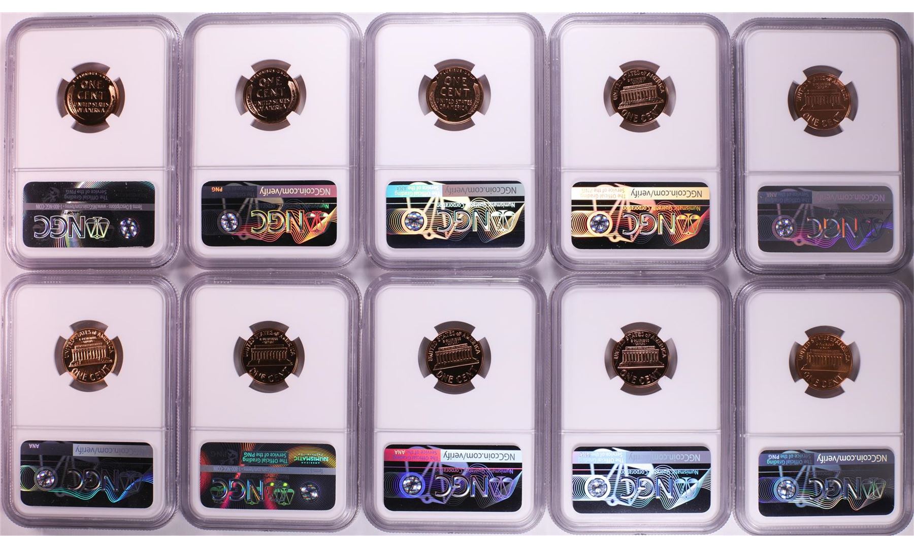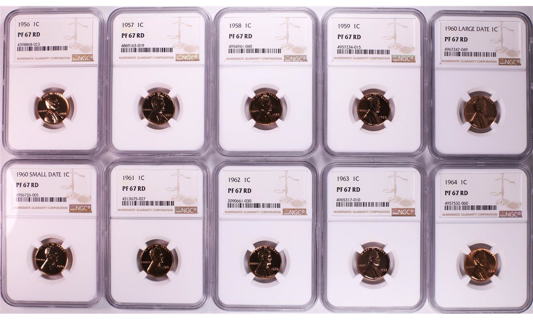 One Set of 1956-1964 Proof Lincoln Wheat Cent Coins NGC PF67RD. NGC Certified.