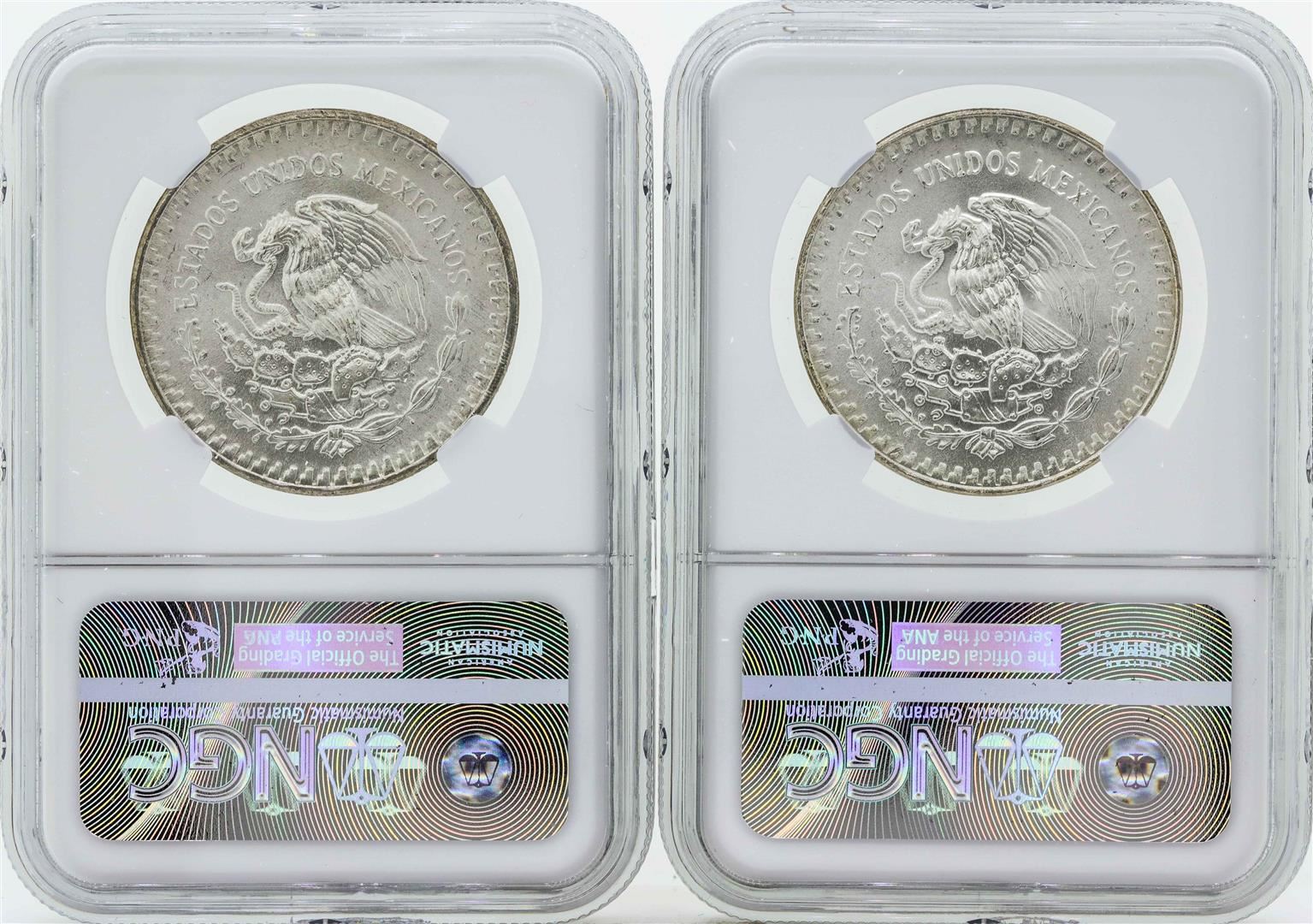 One Set of 1983MO-1984MO Mexico 1 Onza Silver Libertad Coins NGC MS66. NGC Certified.