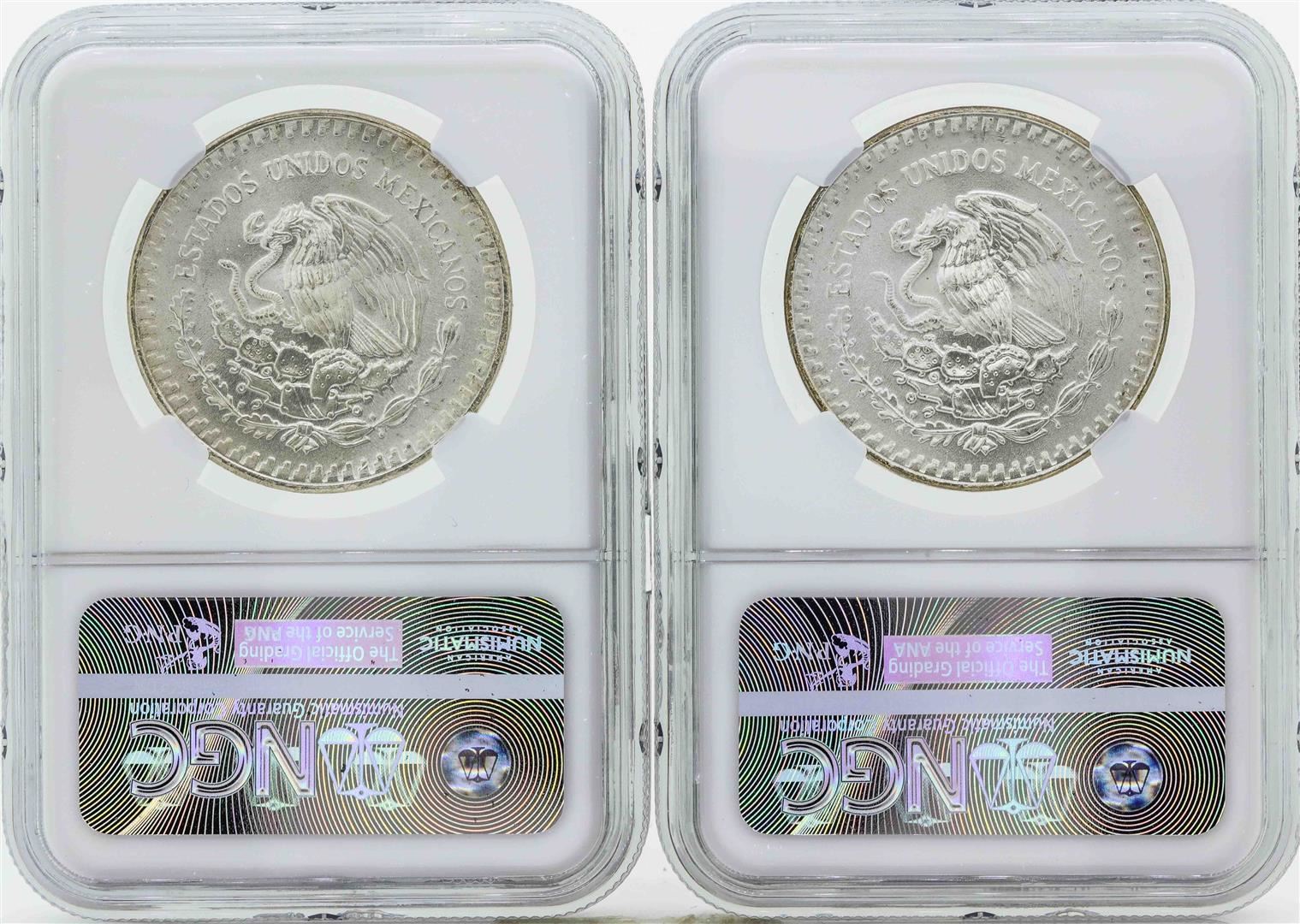 One Set of 1983MO-1984MO Mexico 1 Onza Silver Libertad Coins NGC MS66. NGC Certified.