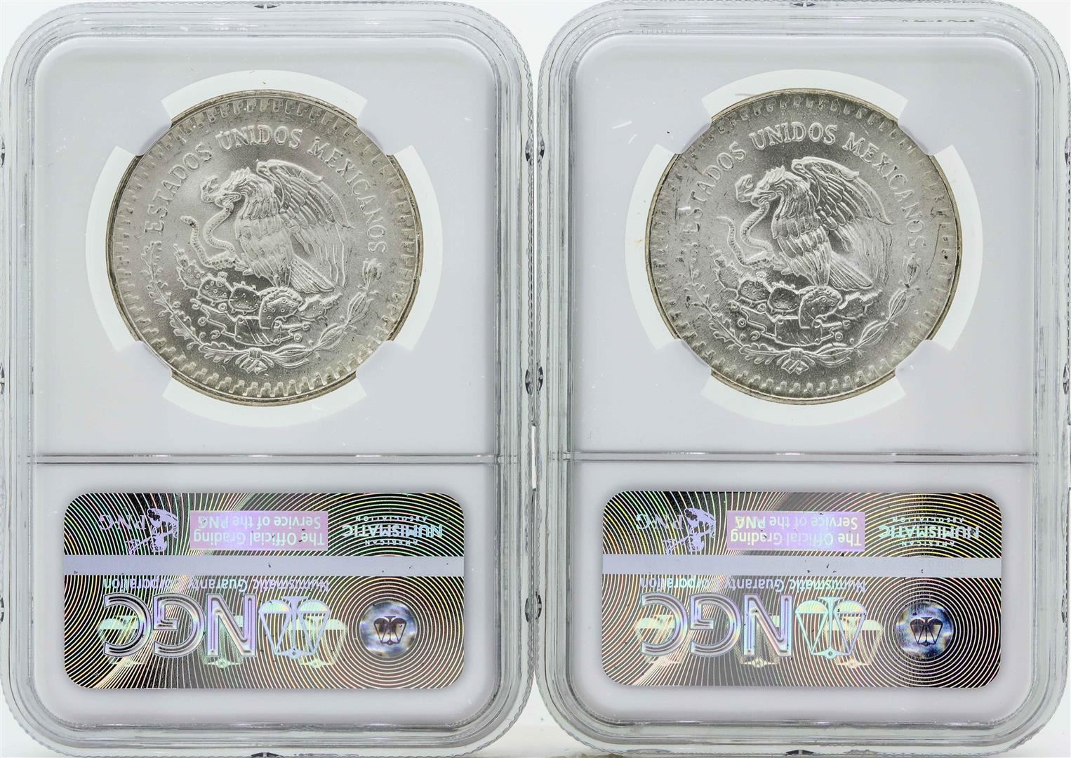 One Set of 1983MO-1984MO Mexico 1 Onza Silver Libertad Coins NGC MS66. NGC Certified.