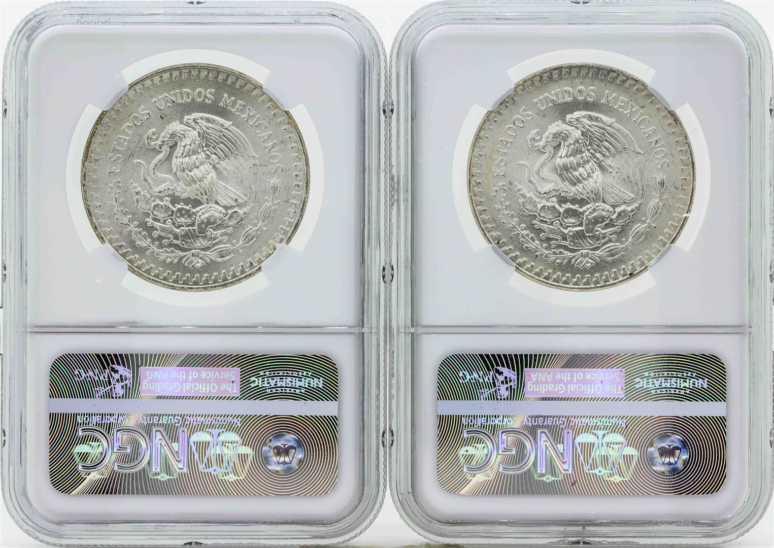 One Set of 1983MO-1984MO Mexico 1 Onza Silver Libertad Coins NGC MS66. NGC Certified.
