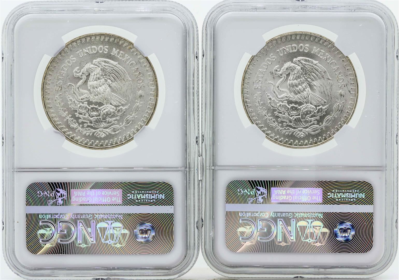 One Set of 1983MO-1984MO Mexico 1 Onza Silver Libertad Coins NGC MS66. NGC Certified.