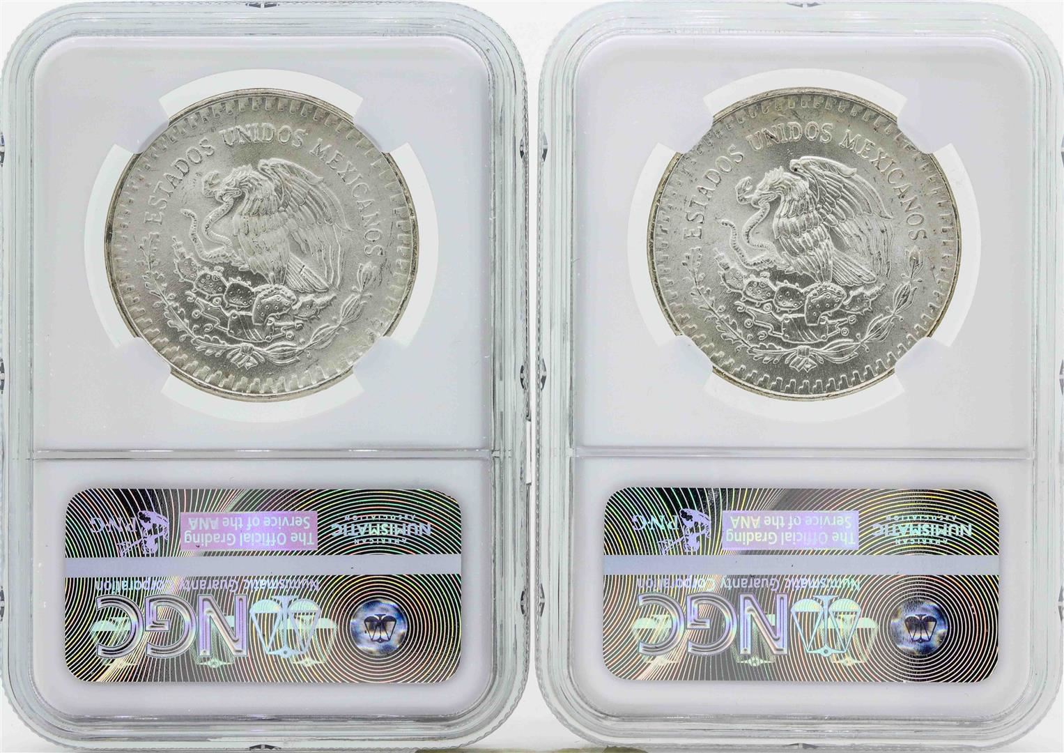 One Set of 1983MO-1984MO Mexico 1 Onza Silver Libertad Coins NGC MS66. NGC Certified.