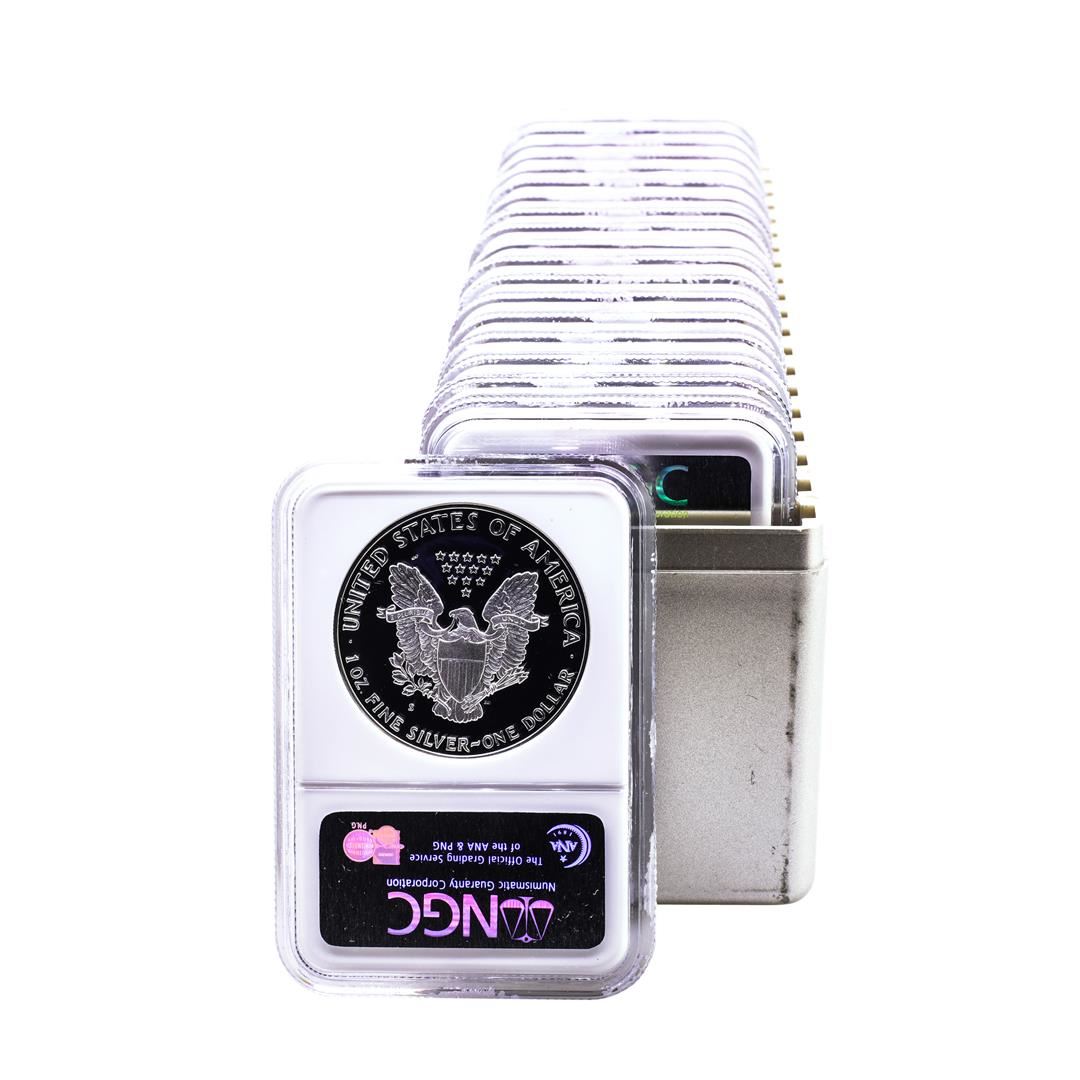 One Set of 1986 - 2005 $1 Proof American Silver Eagle Coins NGC PF69 Ultra Cameo. NGC Certified.