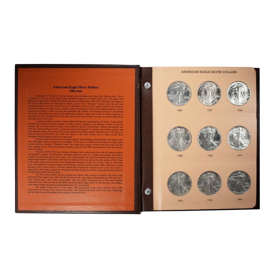 One Set of 1986-2019 $1 American Silver Eagle Coins in Dansco Book.