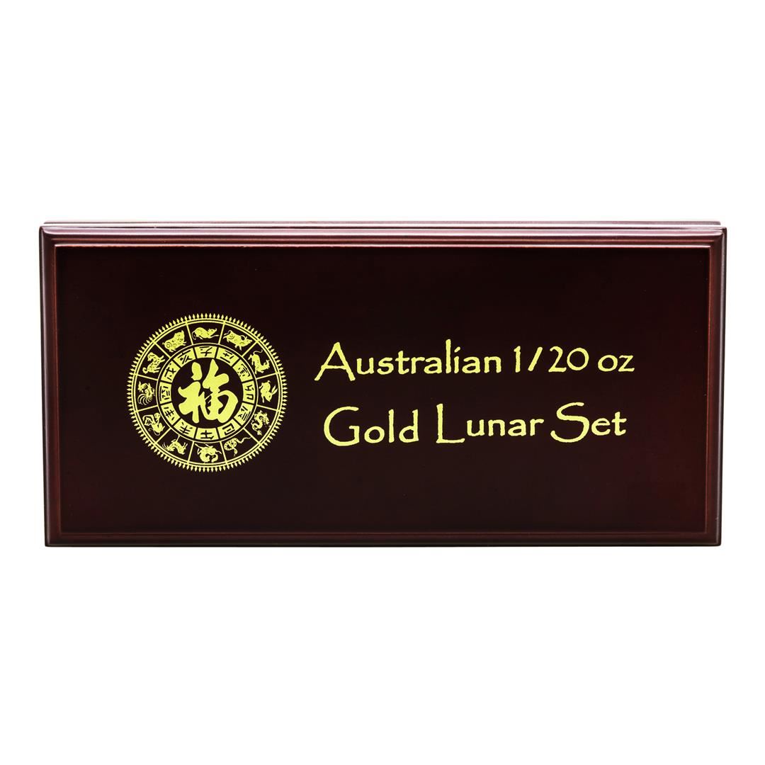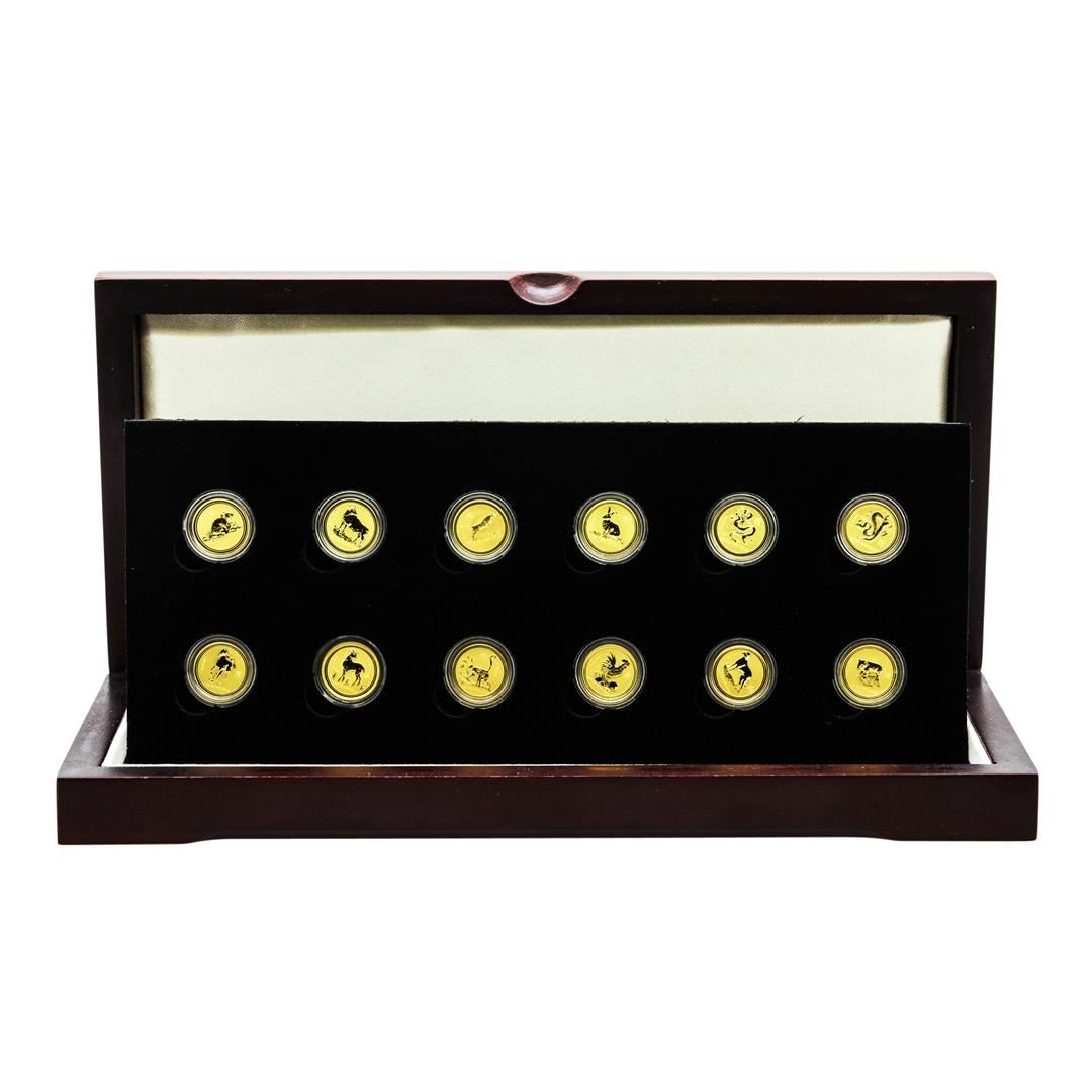 One Set of 1996-2007 $5 Australia Reverse Proof Lunar 1/20 oz Gold Coins in Box.