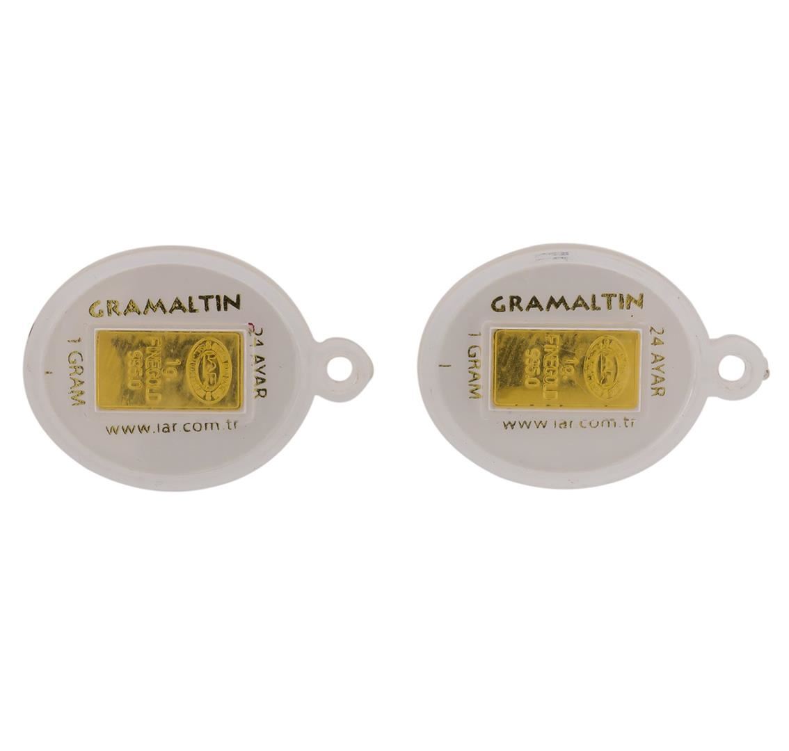 One Set of (2) 1 gram 995.0 Fine Gold Bars Gramaltin Key Chain Case.
