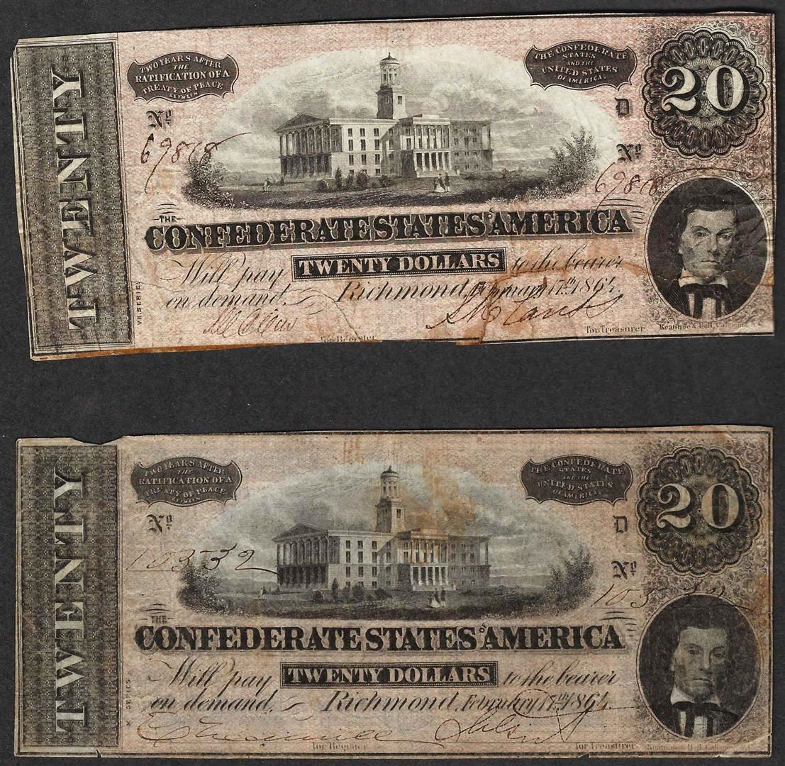 One Set of (2) 1864 $20 Confederate States of America Notes.