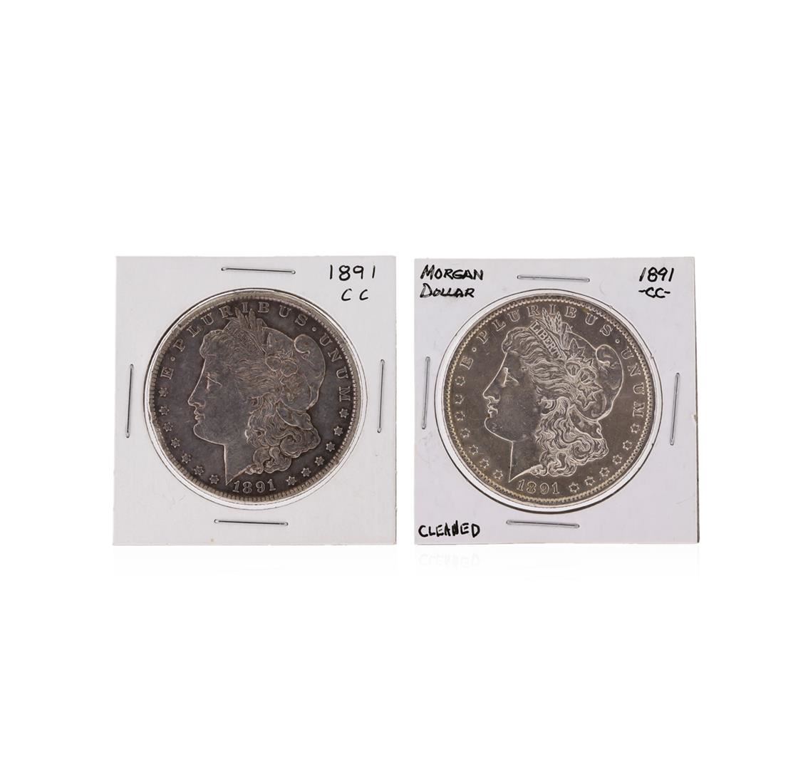 One Set of (2) 1891-CC $1 Morgan Silver Dollar Coins.