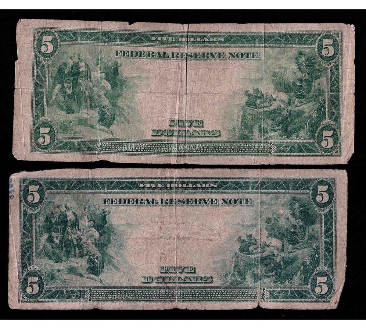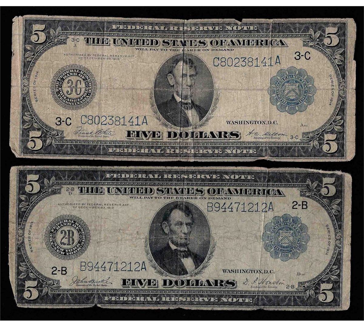 One Set of (2) 1914 $5 Federal Reserve Notes Large Size.