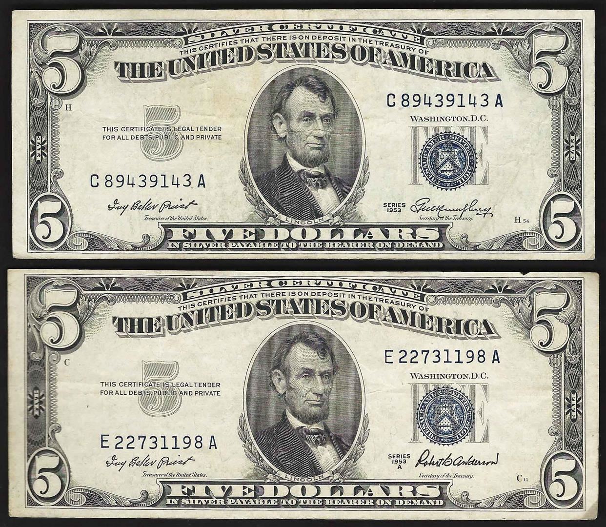 One Set of (2) 1953 $5 Silver Certificate Notes.