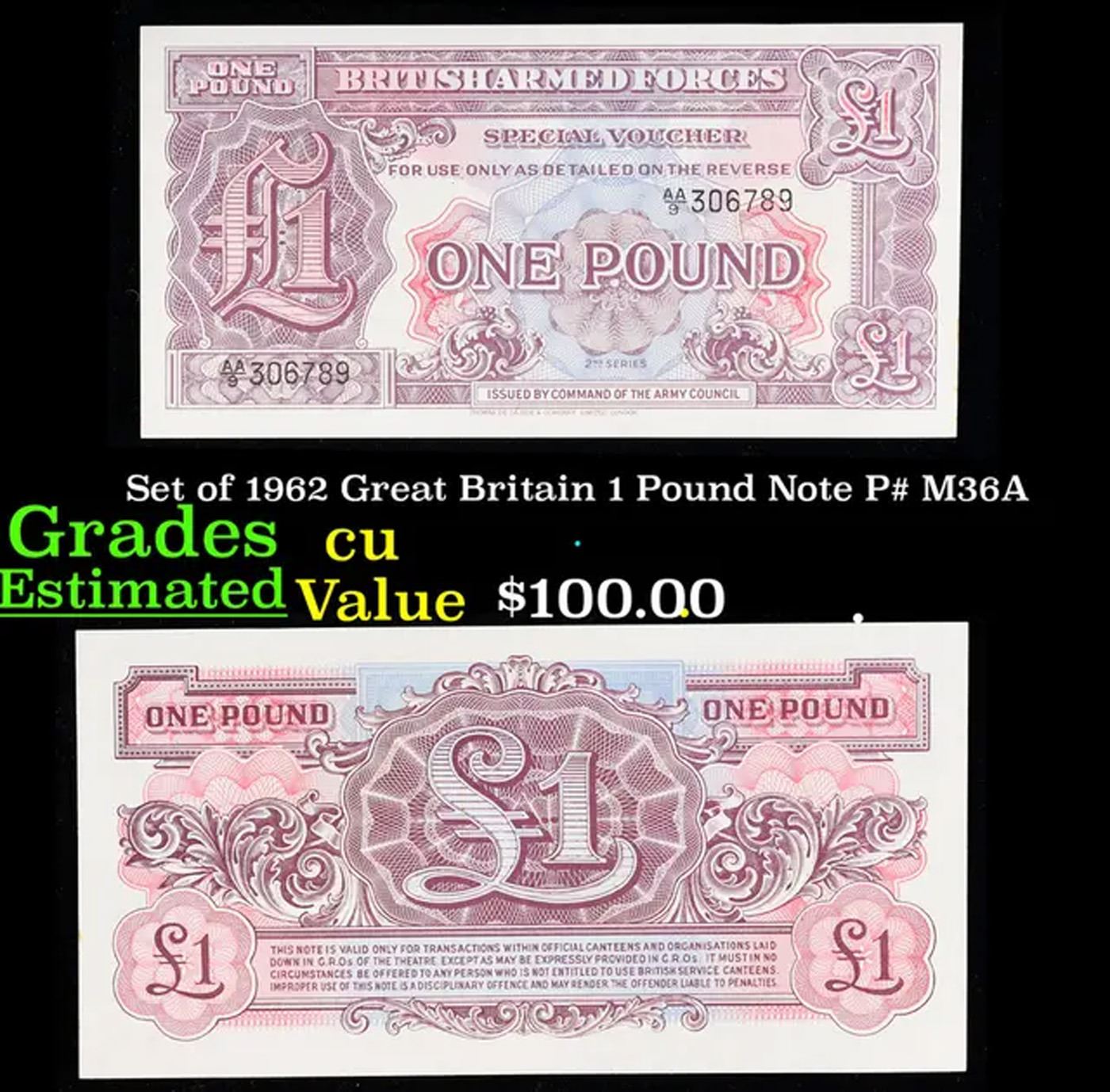 Set of 2 1962 Great Britain 1 Pound Note P# M36A Grades CU.